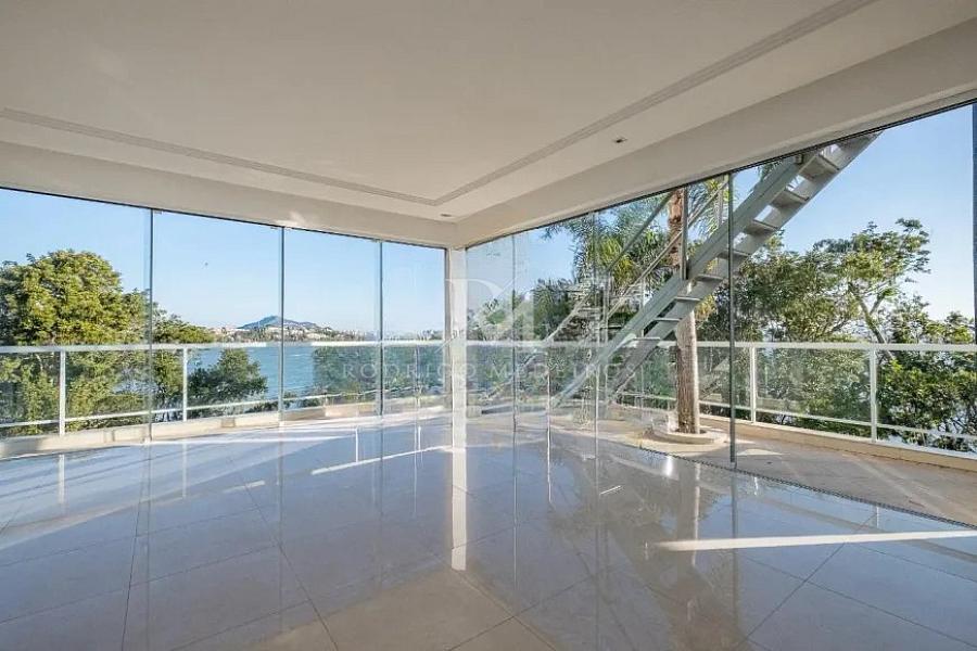Com impressionantes 1.005 m² de área construída, a casa foi projetada para oferecer amplitude, conforto e integração com a paisagem. Os ambientes são generosos, bem iluminados e conectados às áreas externas, valorizando a vista da Baía Norte em diferentes pontos da residência.