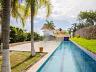 A área externa é um verdadeiro refúgio particular, com piscina, jardim, deck, sauna e terraço, criando múltiplos espaços de lazer e contemplação. O quintal amplo reforça a sensação de exclusividade e liberdade, em um cenário onde o verde e o azul do mar se encontram.