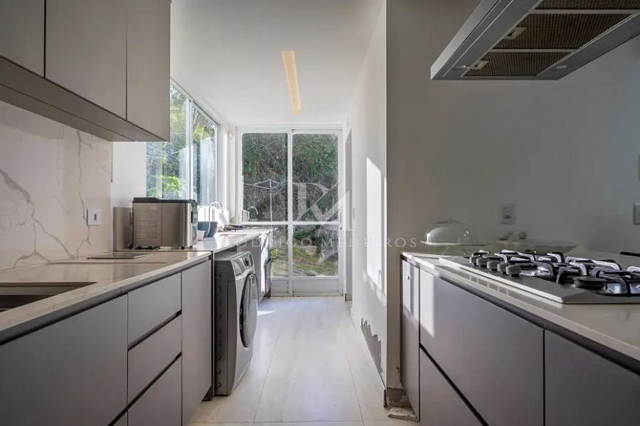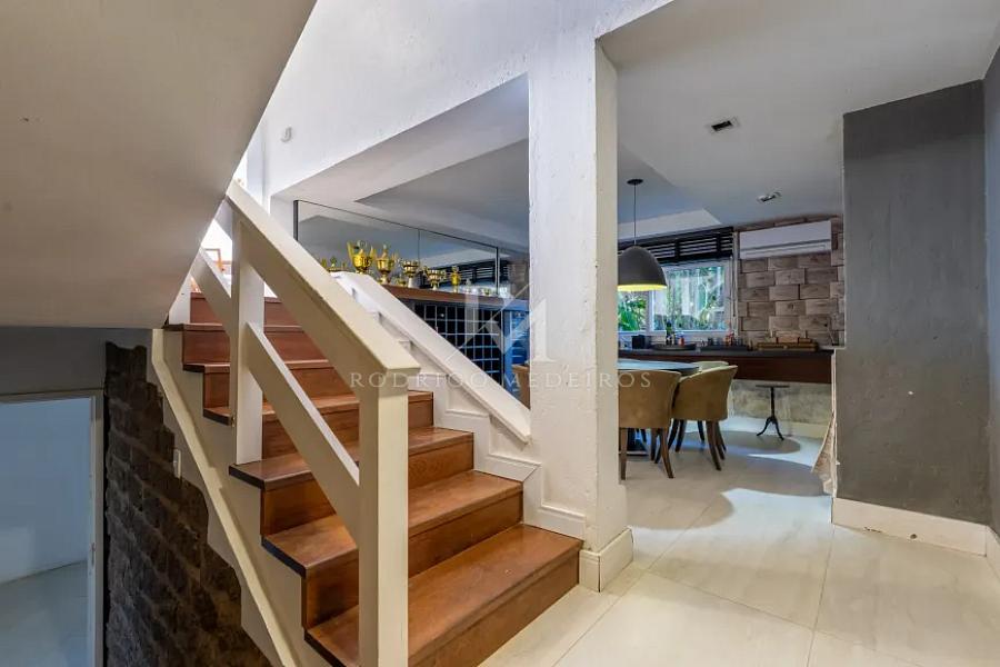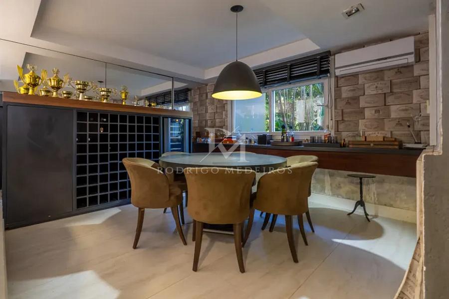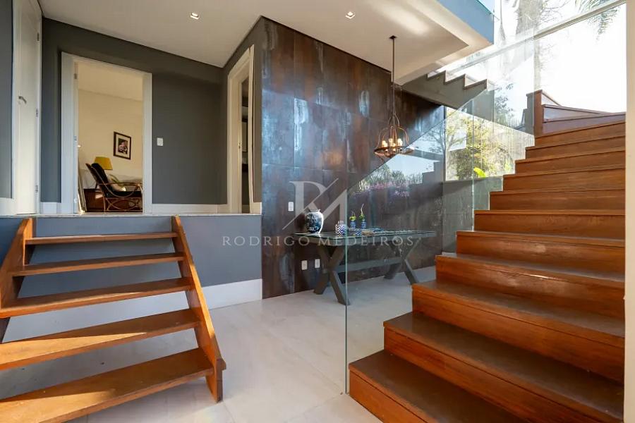 Além disso, a casa conta com dependência de serviço no subsolo, espaços abertos que favorecem a ventilação cruzada, acabamentos de alto padrão e uma concepção arquitetônica que respeita e valoriza a topografia do terreno.