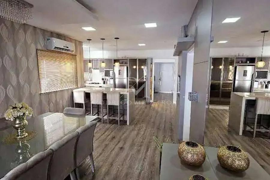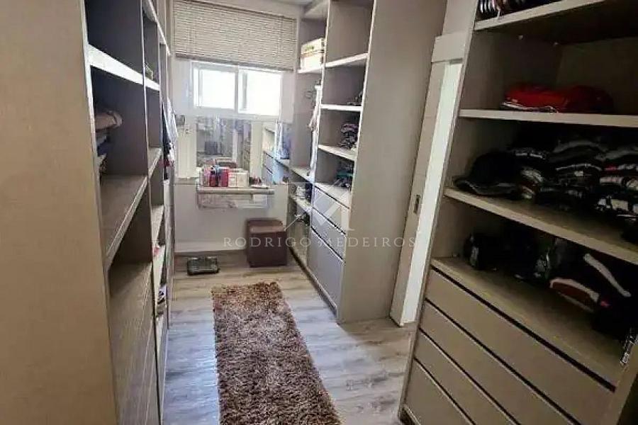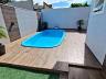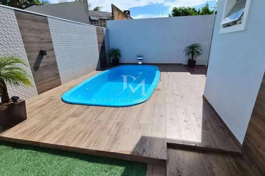 Na área íntima, o imóvel dispõe de três quartos, sendo uma suíte com closet, além de um banheiro social que atende aos demais ambientes. A presença de um banheiro externo agrega praticidade ao uso da área de lazer.