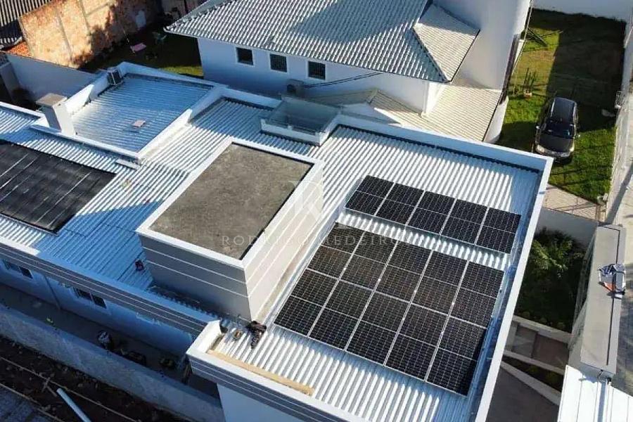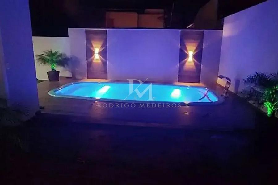 O espaço externo foi projetado para proporcionar conforto e autonomia, com piscina equipada com aquecimento solar e um sistema de energia fotovoltaica já instalado, contribuindo para eficiência energética e redução de custos operacionais ao longo do tempo. O quintal complementa o cenário, oferecendo espaço versátil para diferentes usos.