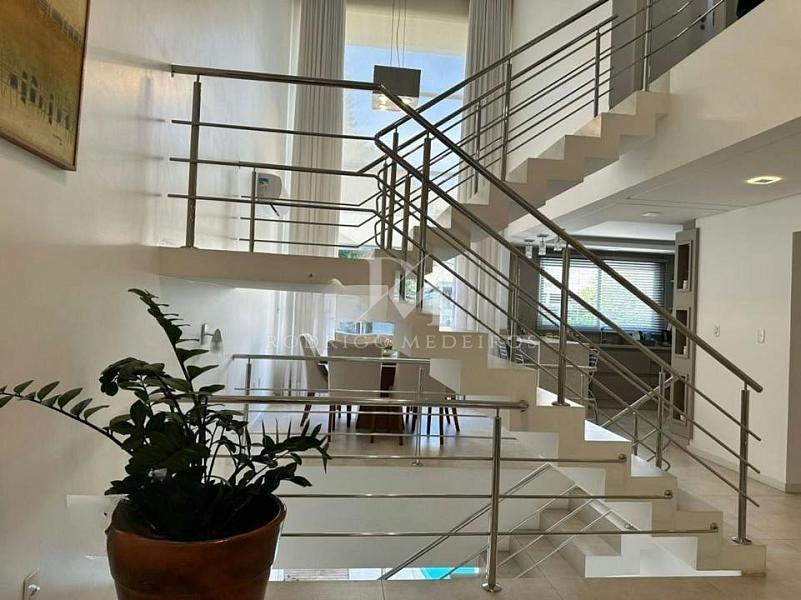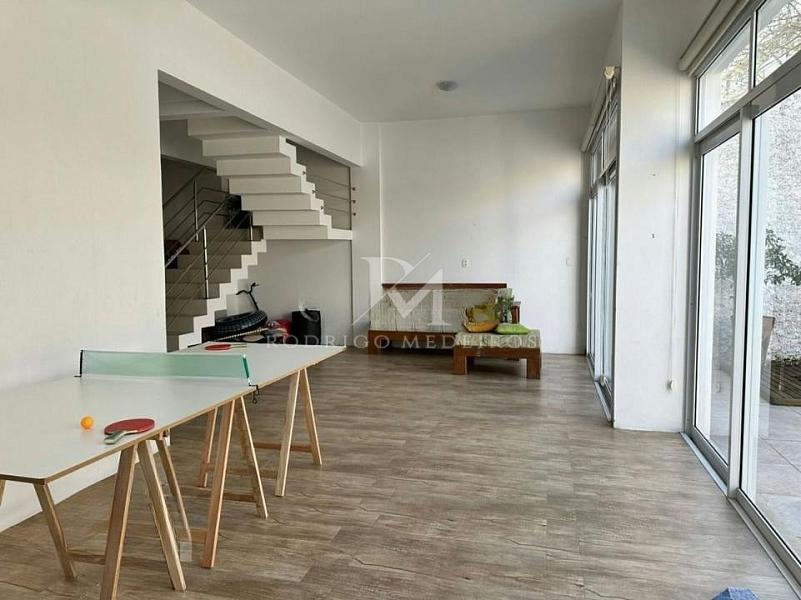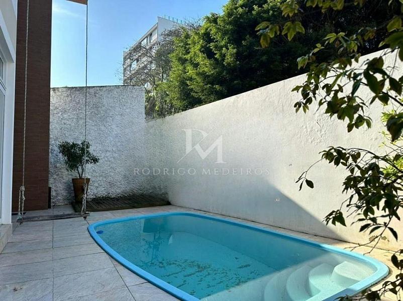 O nível inferior é um verdadeiro espaço de lazer. Com piscina (com possibilidade de cobertura e aquecimento), área gourmet planejada, ampla sala multiuso e outro ambiente que pode ser escritório, ateliê ou adega, o espaço é generoso e versátil. Além disso, há uma lavanderia funcional e um canil para seu pet.