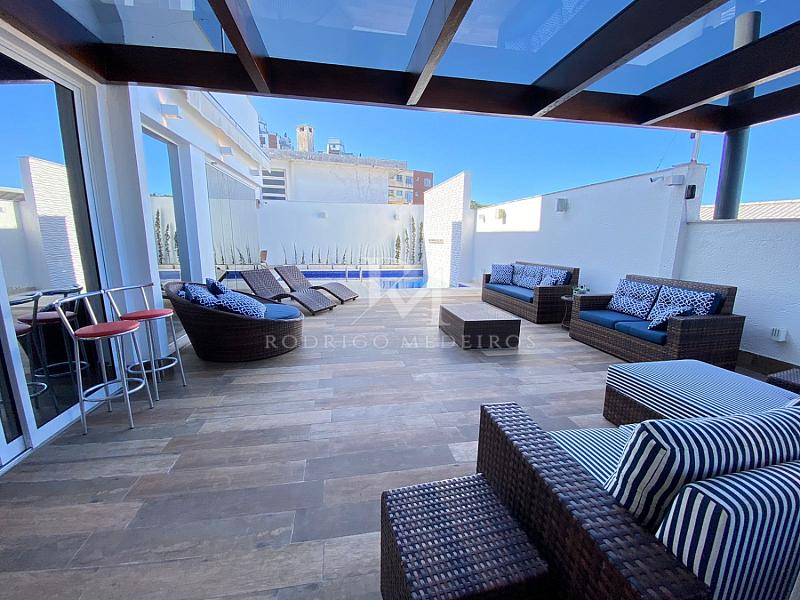 Ambientes sociais integrados, incluindo salas de estar, jantar, leitura e TV. O espaço gourmet, com churrasqueira à carvão, balcões refrigerados, telão e retroprojetor, se abre para o deck com piscina aquecida, espreguiçadeiras e jardim com paisagismo. Cozinha funcional, lavabo, lavanderia e garagem para dois veículos completam esse andar.