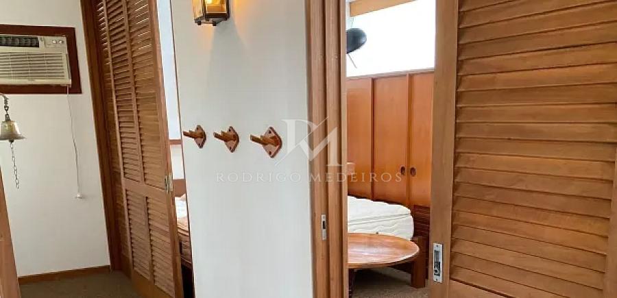 No piso superior, a suíte máster surpreende com varanda privativa, vista para o mar, antessala e closet. Uma segunda suíte, reversível para demi-suíte, e uma sala íntima completam o andar. Com algumas adaptações, esse pavimento pode comportar até quatro dormitórios, oferecendo flexibilidade ao novo morador.