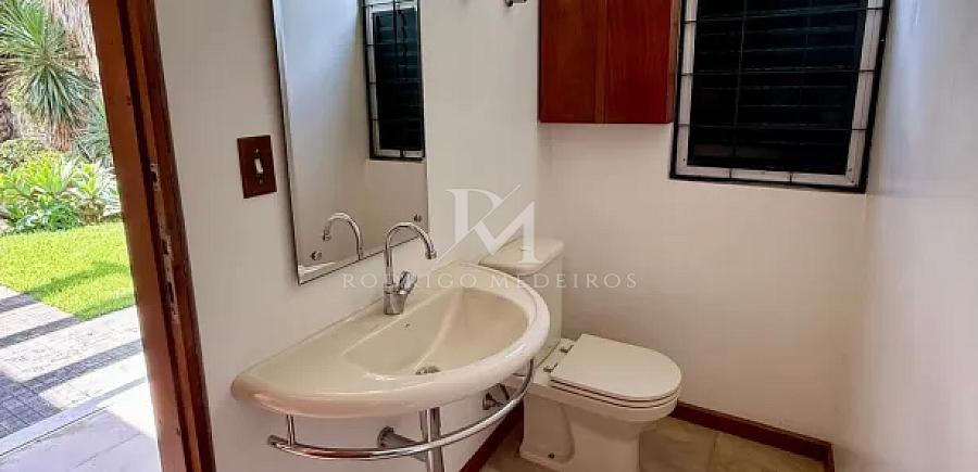 No térreo, o pátio interno convida a momentos de lazer com churrasqueira, chuveiro, jardim e até sauna instalada (atualmente desativada). O paisagismo bem cuidado valoriza ainda mais o amplo quintal, que comporta com facilidade a instalação de piscina ou quadra.