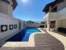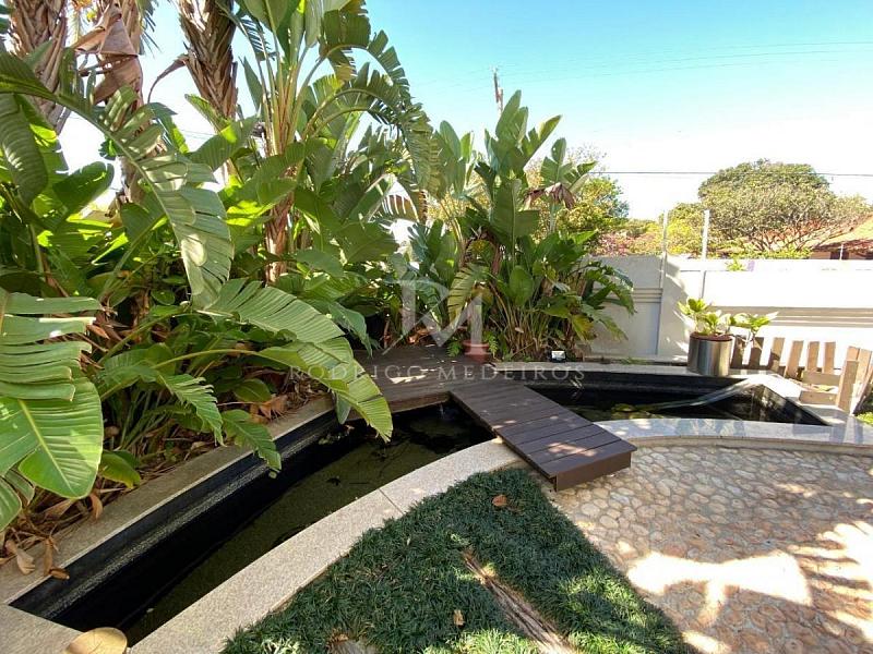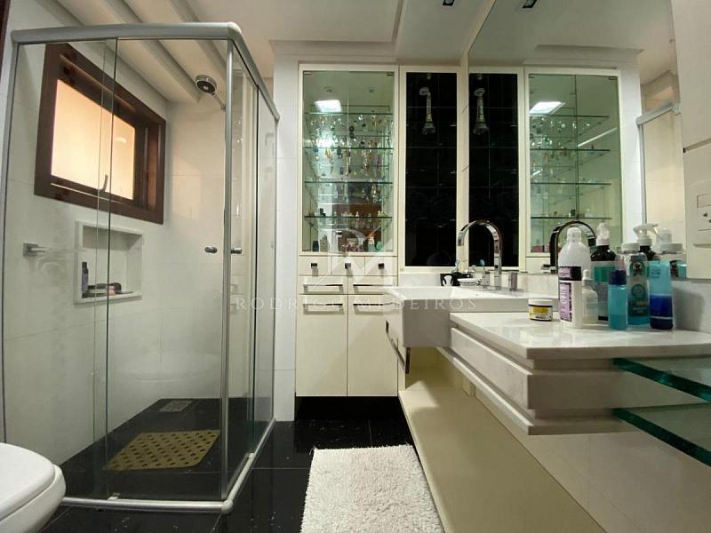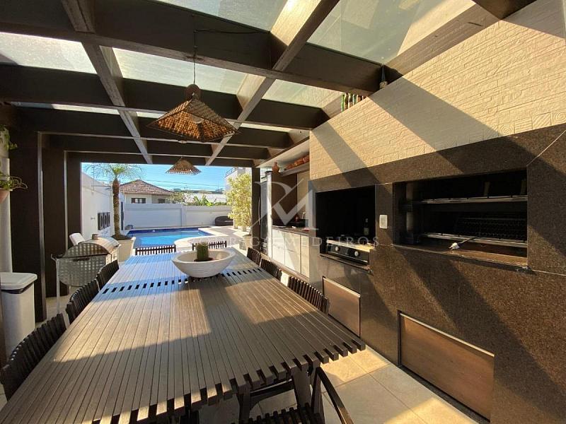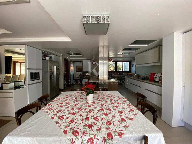 A estrutura da casa também contempla cozinha ampla com despensa, dependência de empregada, lavanderia, 3 lavabos, além de garagem coberta para até 7 veículos.