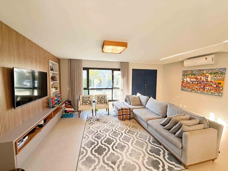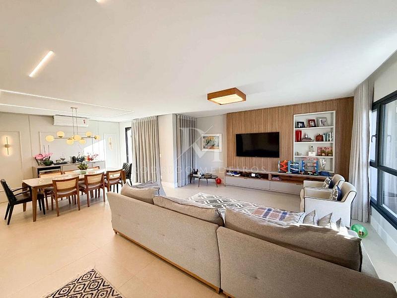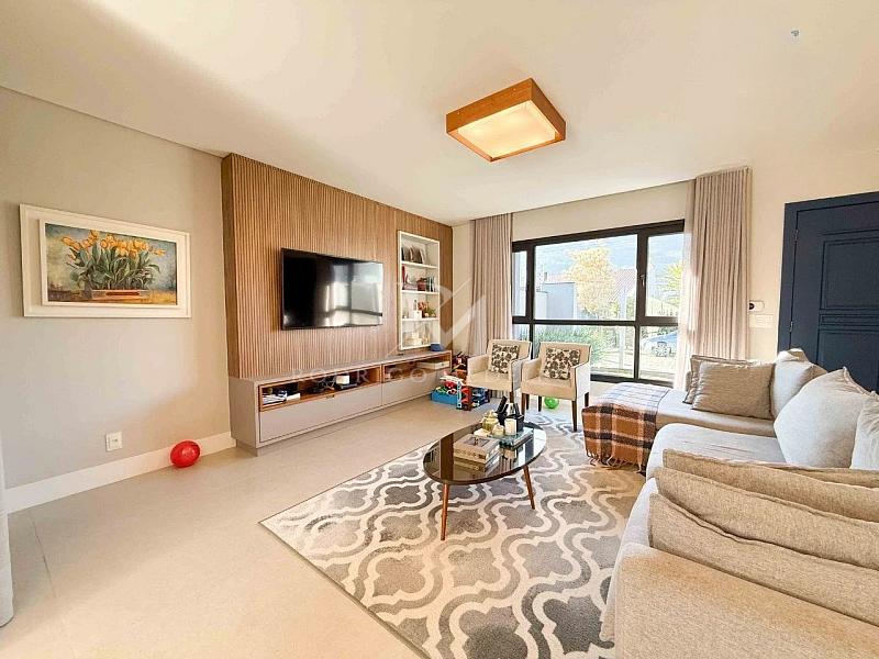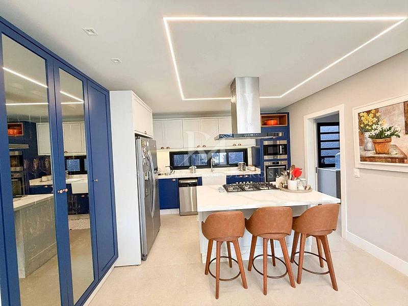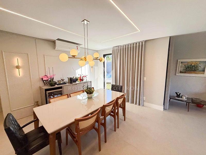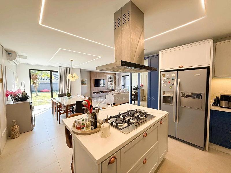 Construída em um terreno de 360 m², a residência possui 220 m² de área construída, com arquitetura contemporânea e uma planta bem distribuída, que valoriza a integração dos ambientes e a iluminação natural. No pavimento térreo, a área social é composta por sala de estar e jantar integradas, criando um ambiente fluido e acolhedor para o convívio diário. A cozinha segue a mesma proposta de integração, oferecendo praticidade e funcionalidade, além de contar com lavabo, área de serviço e três dormitórios, sendo dois deles suítes, atendendo com conforto diferentes perfis de uso.