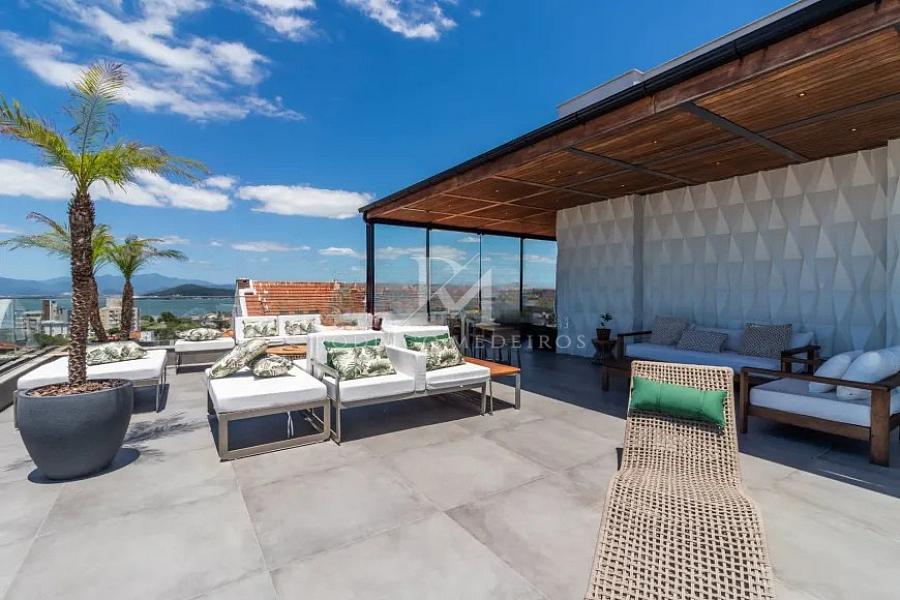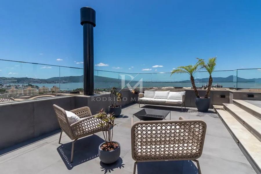 O rooftop amplia ainda mais a experiência de viver neste imóvel, com um espaço cuidadosamente planejado para contemplação e convivência. Com vista de 180º para o mar e para diferentes regiões da ilha, o ambiente reúne lounge, espaço fogo, forno de pizza e mesa para receber com conforto, transformando cada encontro em um momento memorável.