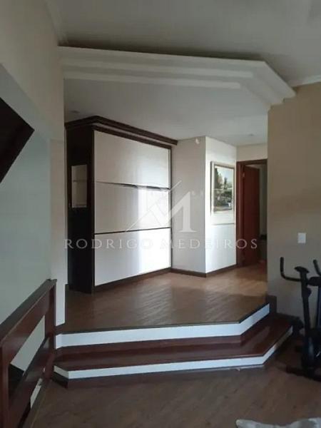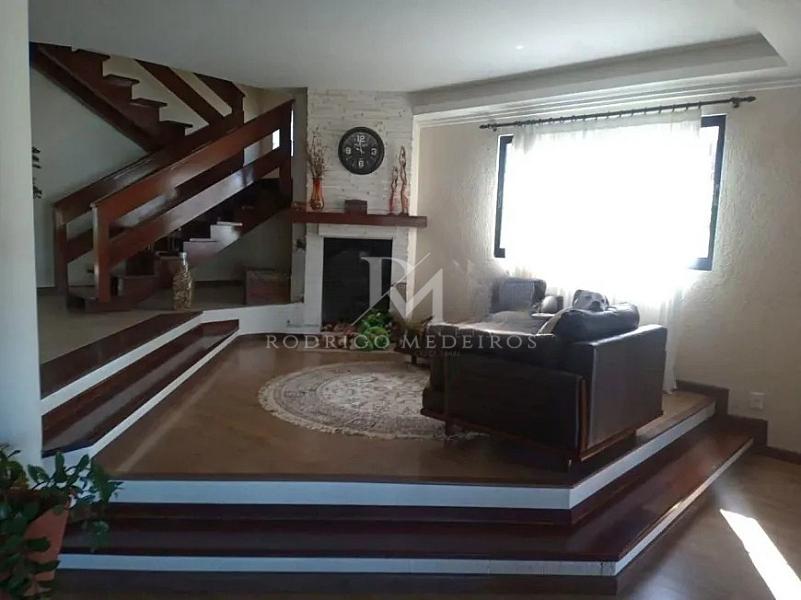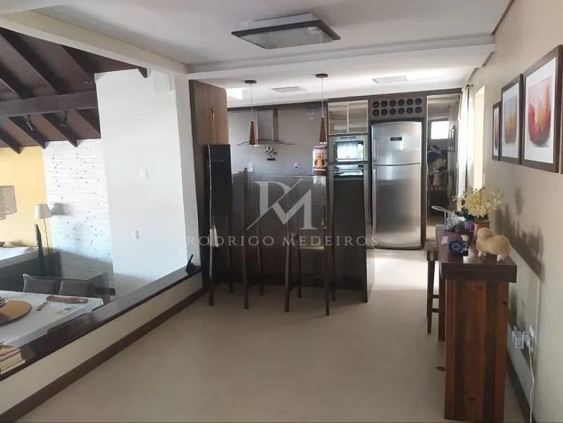 O projeto valoriza integração e conforto. O living distribuído em três ambientes, com dois níveis e lareira, cria uma atmosfera acolhedora e sofisticada. A cozinha americana com armários planejados conecta-se de forma fluida à área social, garantindo praticidade no dia a dia e funcionalidade para receber convidados. No pavimento térreo, há ainda um dormitório, ideal para hóspedes ou para quem busca acessibilidade.