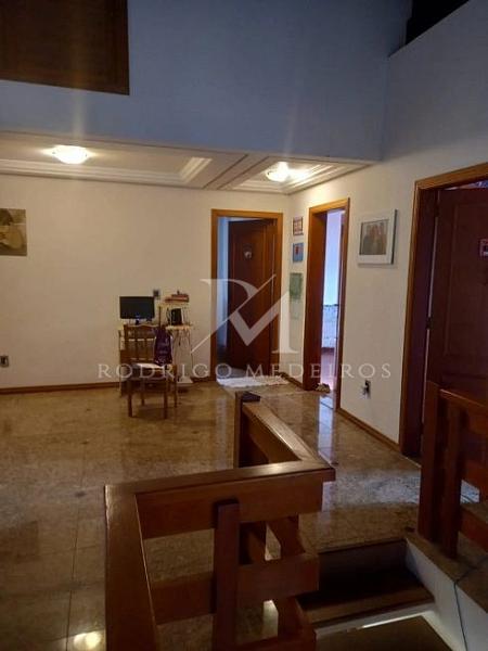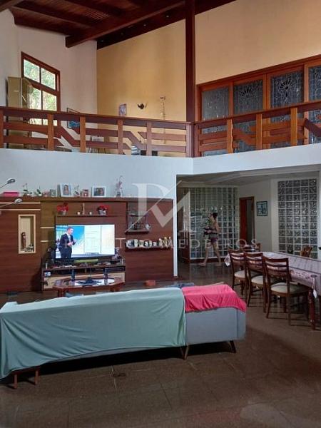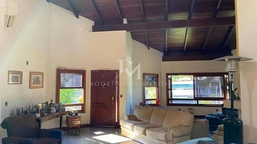 Com 430 m² de área construída, a casa apresenta pé-direito alto e espaços bem distribuídos, proporcionando sensação de amplitude e boa iluminação natural. A área social é composta por salas de estar, jantar e TV integradas, criando um ambiente fluido e agradável para o convívio diário e para receber convidados. A presença da lareira reforça a atmosfera acolhedora dos espaços internos.