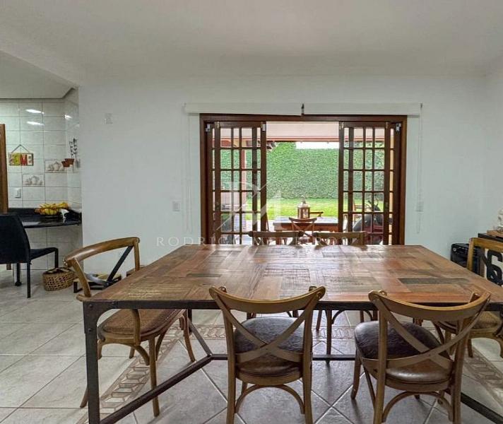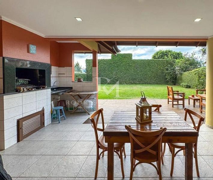 O living em conceito aberto, com pé-direito alto e lareira, integra-se harmoniosamente à cozinha americana e à varanda gourmet. Um ambiente ideal para receber, celebrar ou simplesmente aproveitar a tranquilidade de casa. O deck externo e o generoso pátio com grama, árvores frutíferas e paisagismo bem cuidado completam o cenário perfeito para momentos ao ar livre com a família.