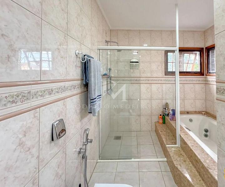 No pavimento térreo, além da área social, a casa conta com um escritório funcional e uma lavanderia ampla, reforçando a praticidade no cotidiano. Já no segundo andar, a área íntima oferece três dormitórios bem distribuídos, todos com sacada, sendo uma suíte master com closet e banheiro espaçoso com banheira de hidromassagem — um verdadeiro refúgio particular.