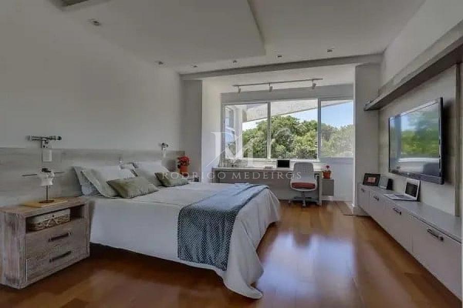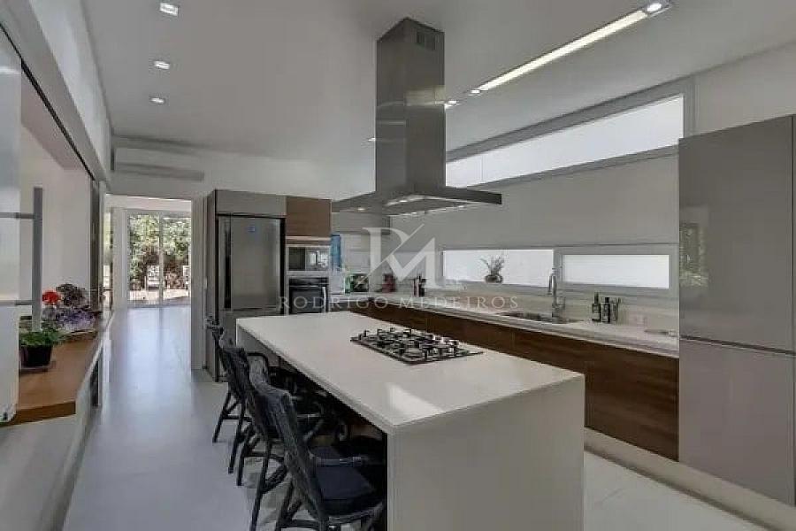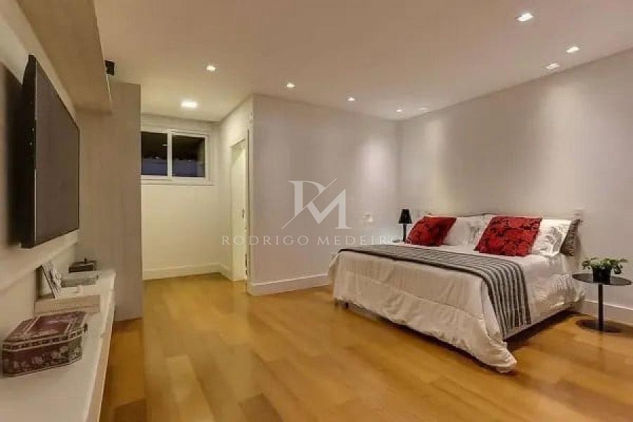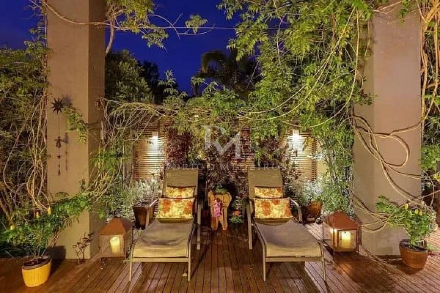 O living com sala de jantar é acolhedor e luminoso, e a cozinha planejada é equipada com móveis sob medida e eletrodomésticos modernos. Além disso, o imóvel conta com dependência de empregada, área de serviço, ar condicionado em todos os cômodos e um elevador que atende os diferentes níveis com comodidade.