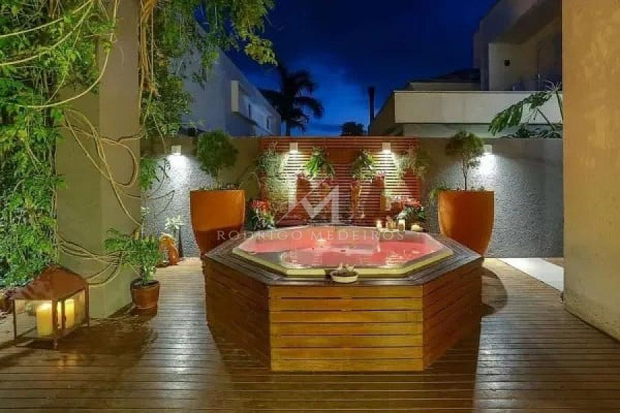 Na área externa, o jardim bem cuidado complementa o charme da casa, que ainda dispõe de bicicletário, sala de ginástica privativa e quatro vagas de garagem. Tudo isso em uma rua tranquila, arborizada e extremamente valorizada de Jurerê Internacional.