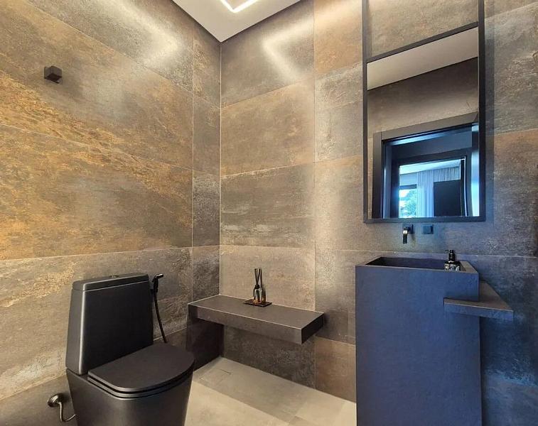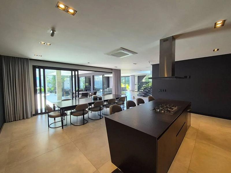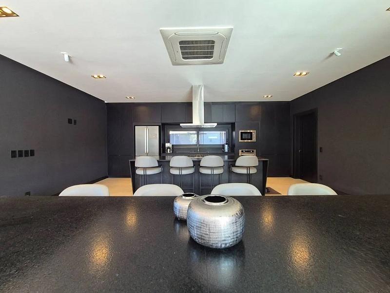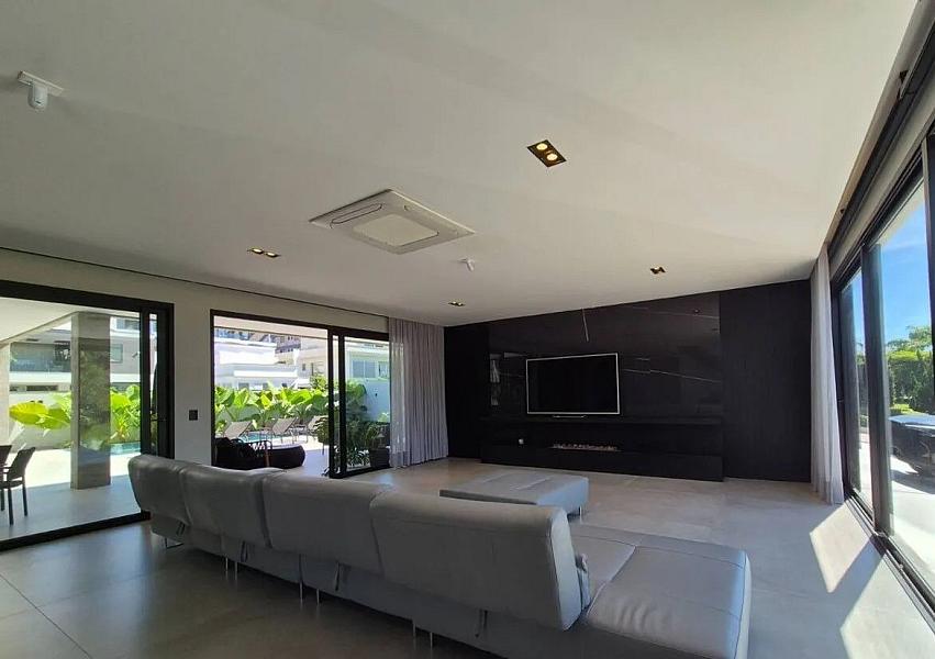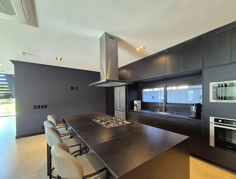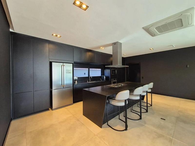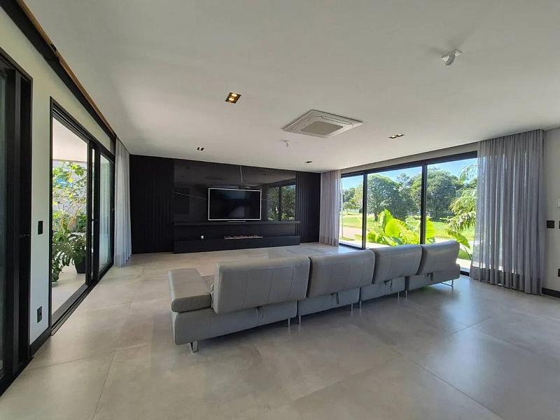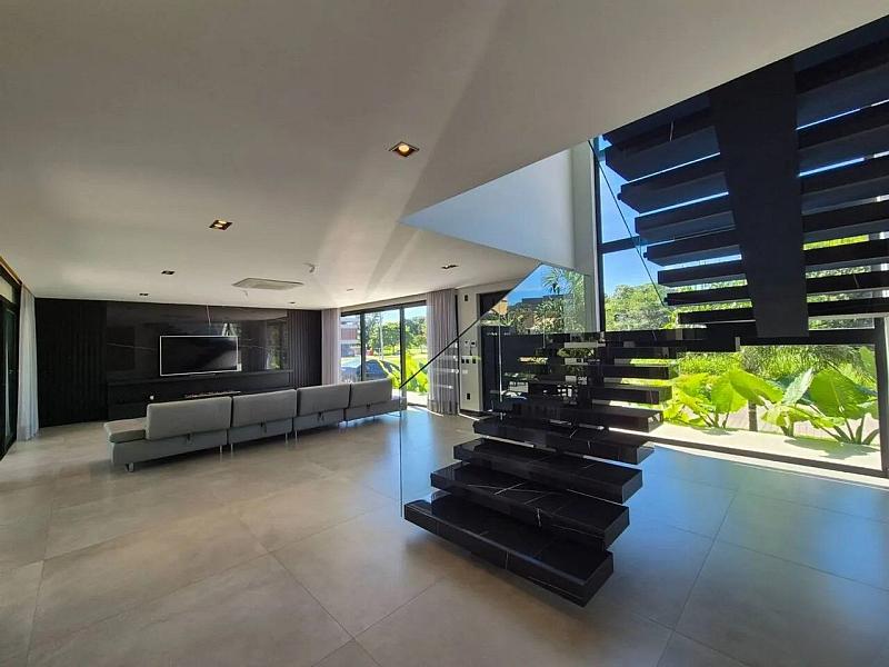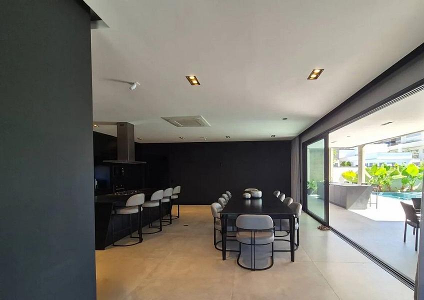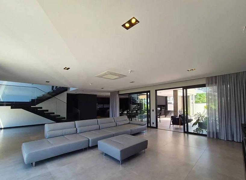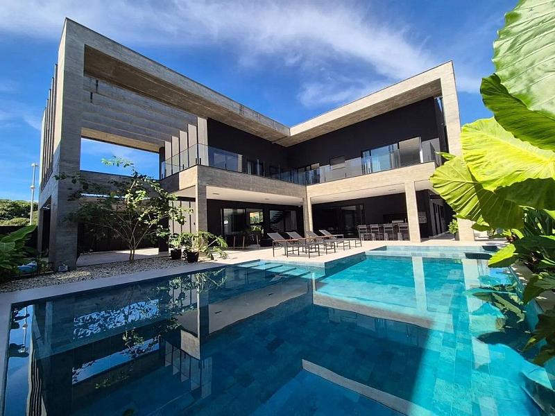 Apresento a vocês essa moderna mansão, com acabamentos de altíssima qualidade e bom gosto. São 5 suítes em um projeto de 513m², com um conceito aberto que proporciona ambientes arejados e iluminados, além de excelente ventilação.