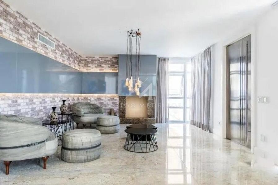 No terraço, a vista panorâmica do mar de Jurerê Internacional oferece o cenário perfeito para encontros e celebrações ao ar livre. Já a garagem, com capacidade para até 8 veículos, reforça a imponência e a praticidade do imóvel.