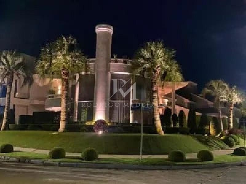 Distribuída em um terreno de 600 m², a residência impressiona já na entrada com seu pé-direito duplo, que amplia a sensação de espaço e luminosidade natural. Os interiores revelam cinco suítes mobiliadas com requinte, oferecendo privacidade e aconchego em cada detalhe — ideal para famílias amplas ou para quem gosta de receber.