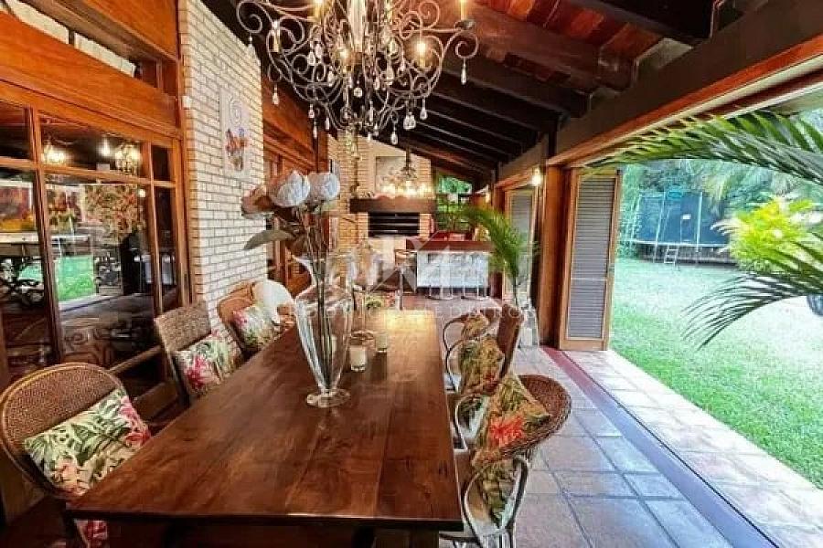 Com 621 m² de área construída, a residência combina amplitude e funcionalidade em ambientes iluminados e arejados. São cinco dormitórios no total, incluindo uma suíte master com hidromassagem, duas demi-suítes e uma dependência completa. A estrutura inclui também uma despensa, área de serviço e escritório, acomodando com elegância todos os momentos do cotidiano.