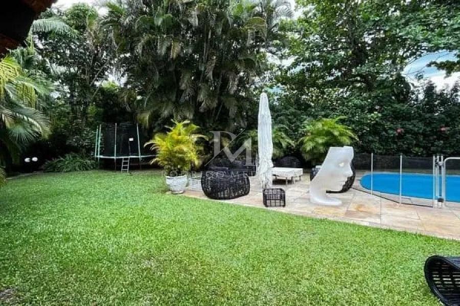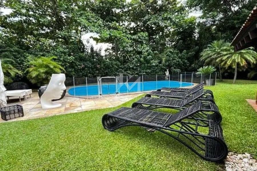 Com três vagas de garagem cobertas, a casa também conta com três boilers com aquecimento solar, reforçando o cuidado com conforto térmico e sustentabilidade. Outro diferencial notável é a casa de caseiro independente, garantindo suporte prático no dia a dia sem comprometer a privacidade da residência principal.