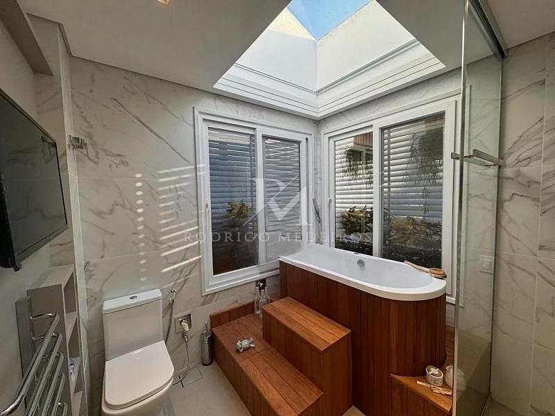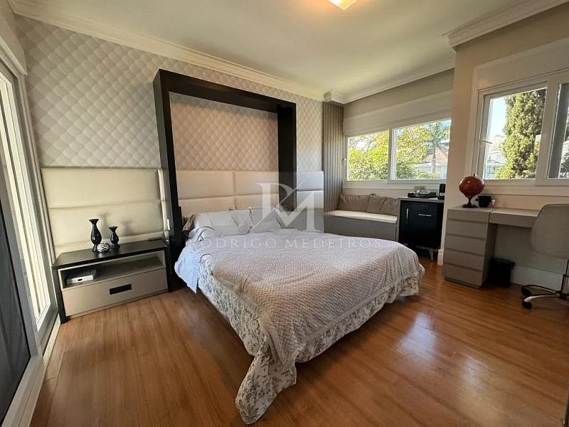 A área íntima conta com quatro suítes bem distribuídas, incluindo uma suíte master que se diferencia pelo alto nível de privacidade e conforto. O ambiente dispõe de dois closets e um ofurô privativo, criando um espaço exclusivo voltado ao descanso e ao bem-estar. Os demais dormitórios seguem o mesmo padrão de qualidade, com excelente dimensionamento e acabamentos criteriosos.