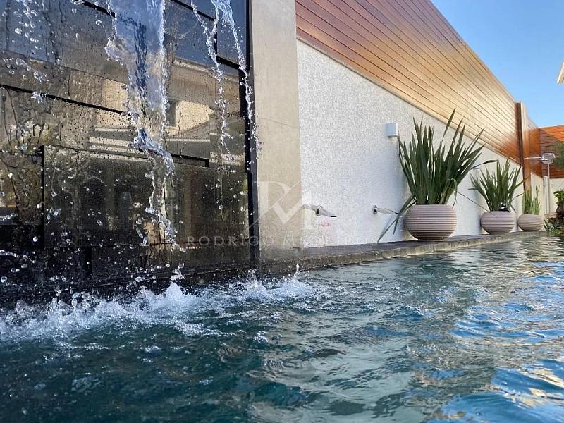 O lazer é um dos pontos centrais da residência. A área externa oferece piscina aquecida com spa, perfeita para aproveitar em diferentes épocas do ano. A casa conta ainda com adega climatizada e academia privativa, permitindo uma rotina completa de lazer, saúde e entretenimento sem sair de casa.