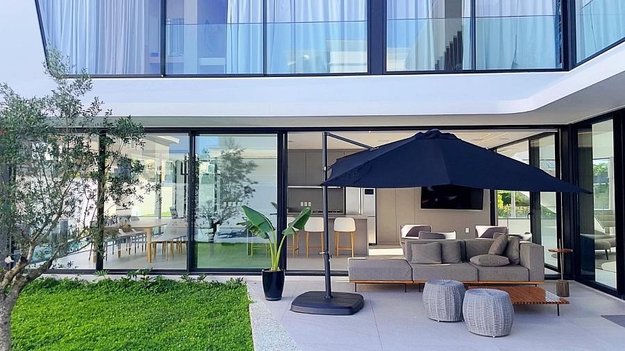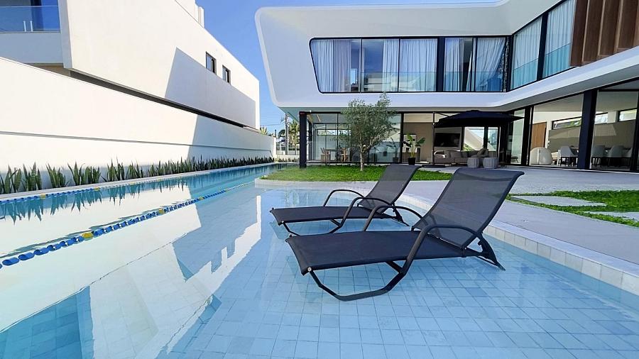 Esta magnífica mansão é um verdadeiro espetáculo de arquitetura, combinando elegância e modernidade, e ainda com a vantagem de estar localizada em um dos bairros mais exclusivos de Florianópolis.