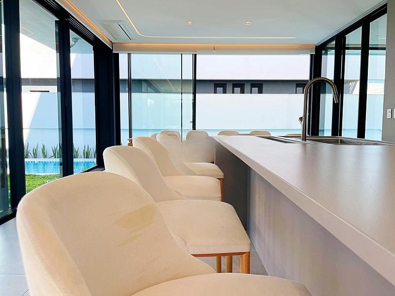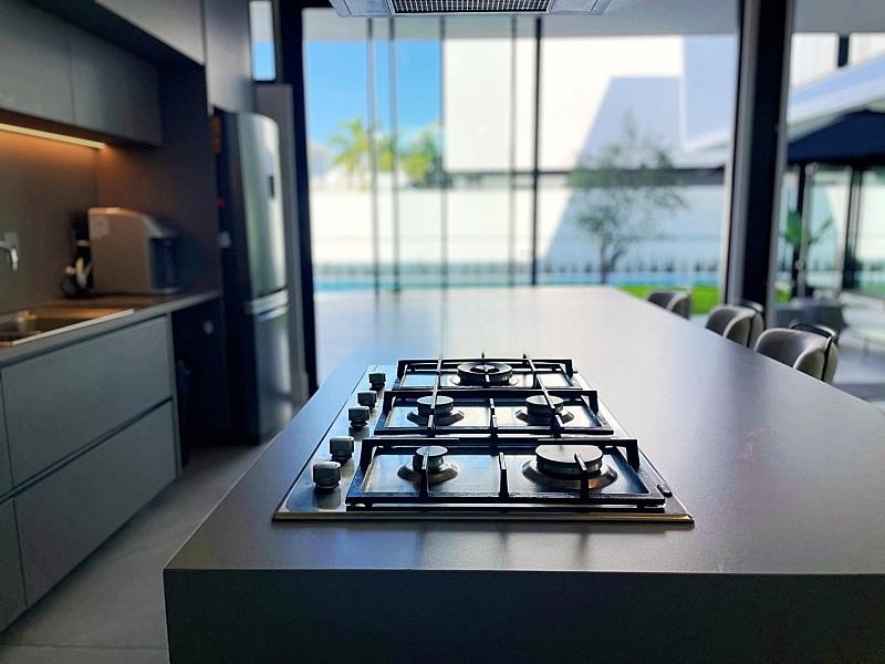 • Cozinha integrada com a área de estar e churrasqueira para momentos de lazer.