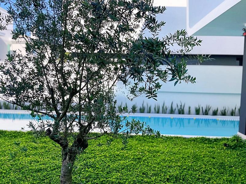 • O terreno maior que o padrão da quadra permite a construção de uma piscina com raia de 25 metros, a única casa com essa característica em Jurerê Internacional.