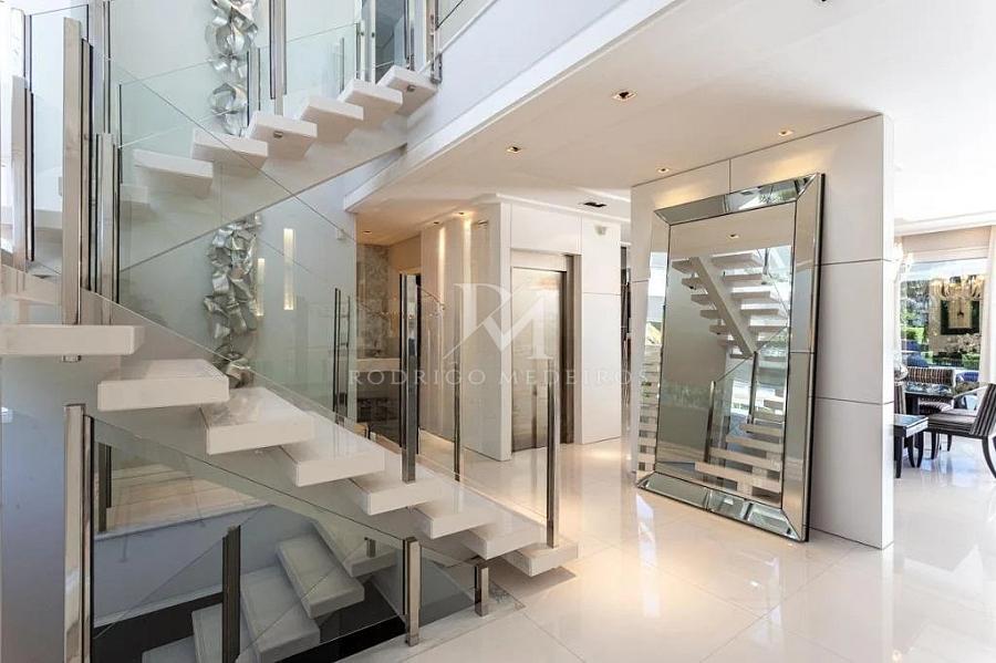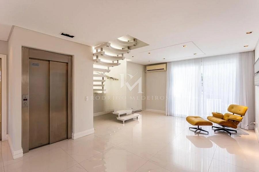 A área íntima é composta por cinco suítes espaçosas, todas com closets, garantindo conforto e independência aos moradores. Os ambientes foram cuidadosamente planejados para oferecer bem-estar, iluminação natural e uma atmosfera elegante. A residência conta ainda com um apartamento completo no subsolo, ideal para hóspedes, familiares ou uso independente, além de um escritório no pavimento térreo que pode ser facilmente convertido em mais uma suíte, ampliando ainda mais a versatilidade do projeto.