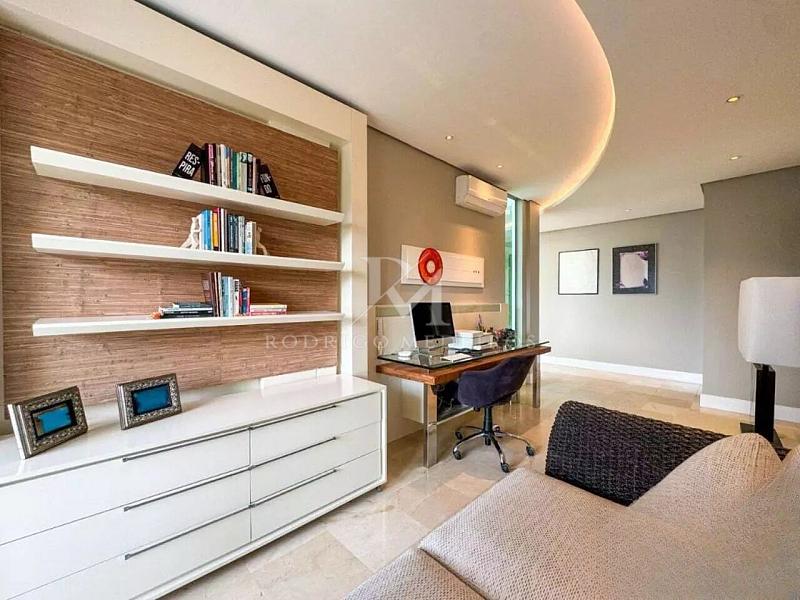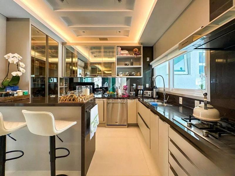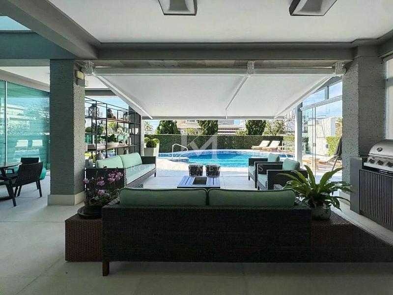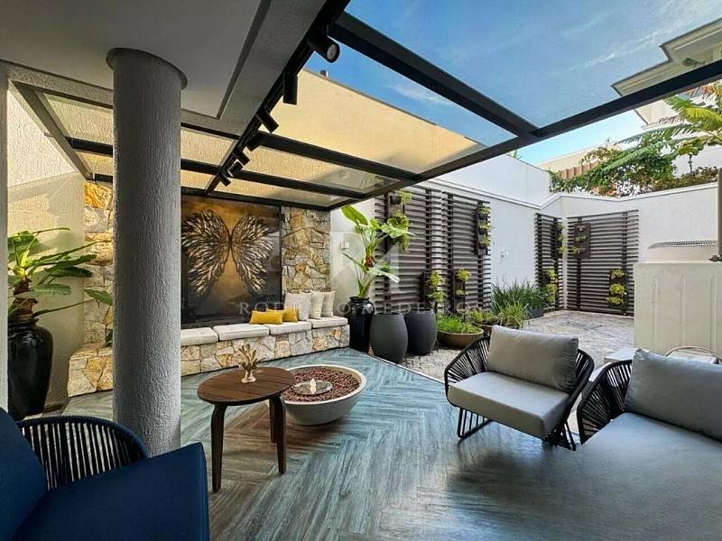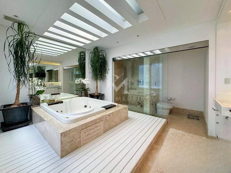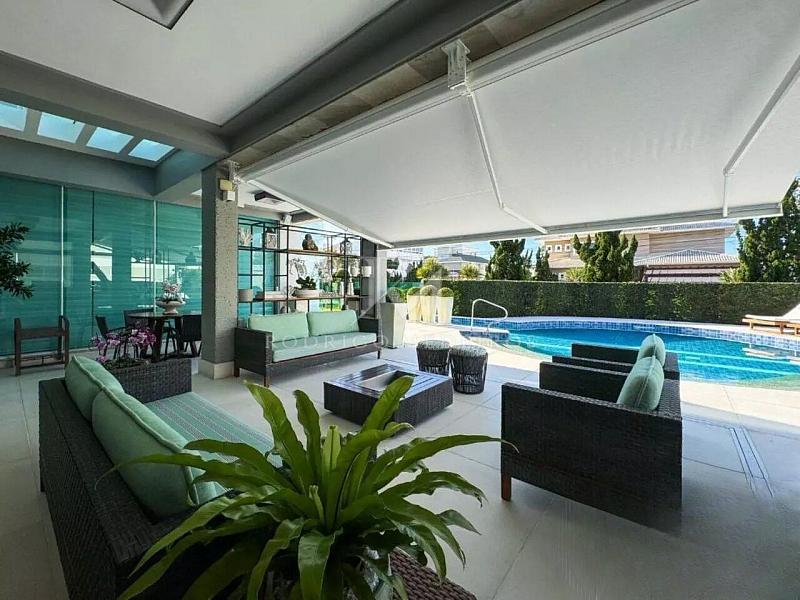 Na área externa, a piscina aquecida com cascata se integra ao paisagismo, criando um espaço de lazer sofisticado e reservado. O imóvel dispõe também de elevador, persianas automatizadas, toldo automatizado, sistema de segurança com câmeras, aquecimento solar, aquecimento a gás e piso aquecido, proporcionando conforto em todas as estações.