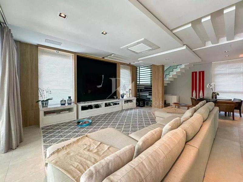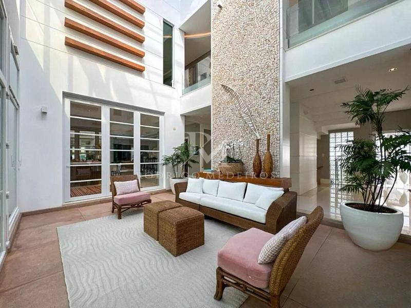 Com 1.085 m² de área construída em um terreno de 1.200 m², o imóvel apresenta ambientes amplos, pé-direito duplo e projeto arquitetônico que valoriza iluminação natural, integração e conforto. A casa será entregue finamente mobiliada, com materiais nobres como porcelanato de alto padrão e mármore, além de teto rebaixado em gesso e projeto luminotécnico completo.