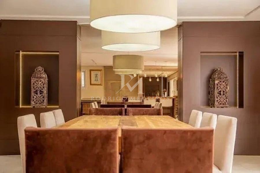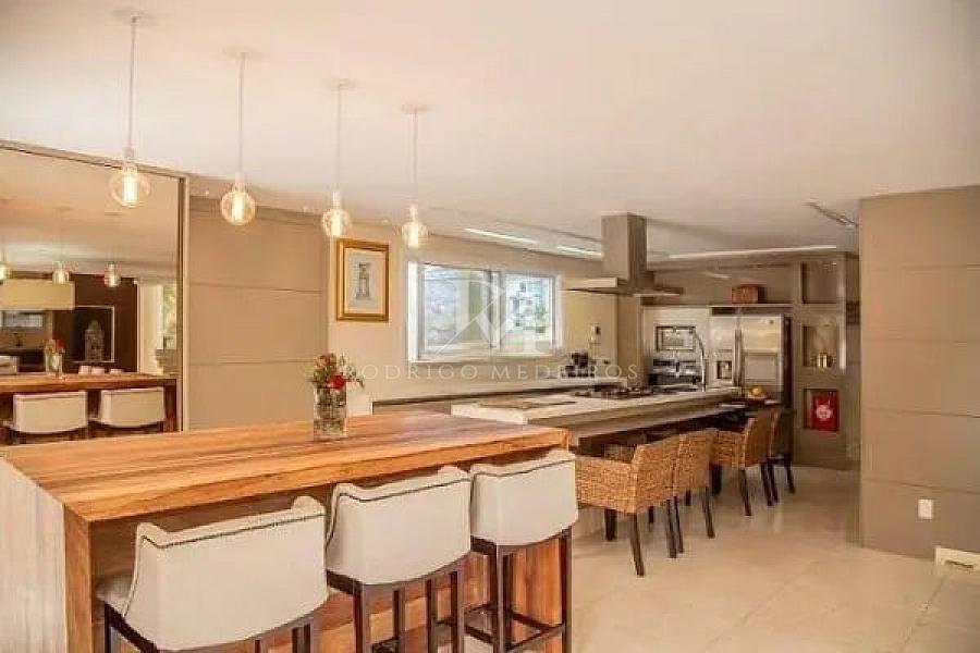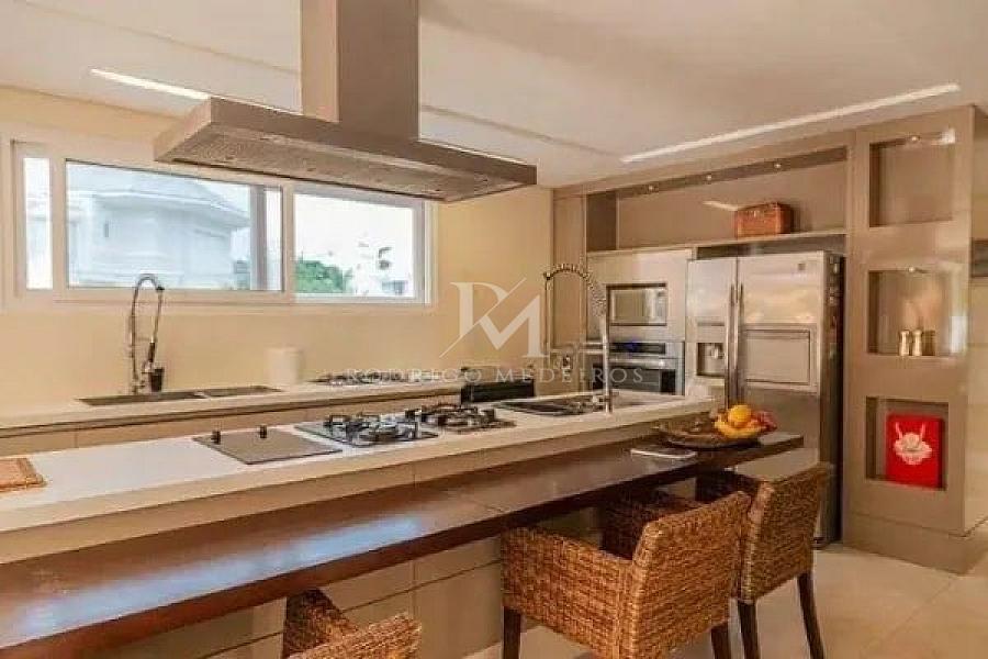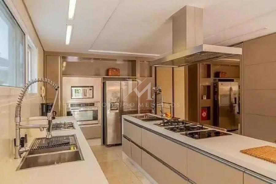 A área social é composta por duas salas de TV aconchegantes, além de sala de estar e jantar com capacidade para até 16 pessoas, criando cenários ideais tanto para convívio íntimo quanto para ocasiões especiais. A cozinha, completamente equipada, traz eletrodomésticos e comodidades de primeira linha, valorizando a funcionalidade com estilo.