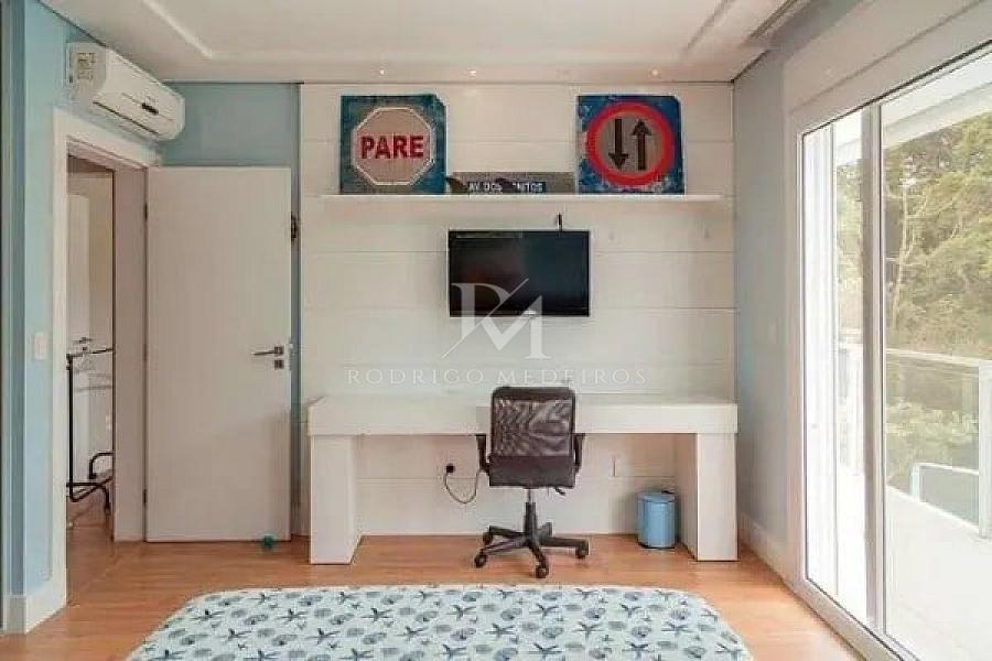 No pavimento superior, encontram-se os sete dormitórios — sendo seis suítes — incluindo uma suíte master com closet e banheiro com hidromassagem. A área externa amplia ainda mais o leque de possibilidades, com piscina, espaço para lazer e total privacidade, ideal para aproveitar momentos inesquecíveis com família e amigos.