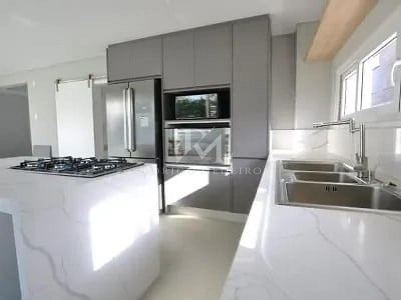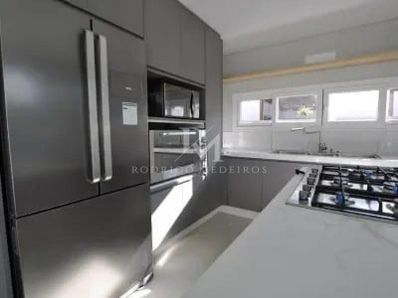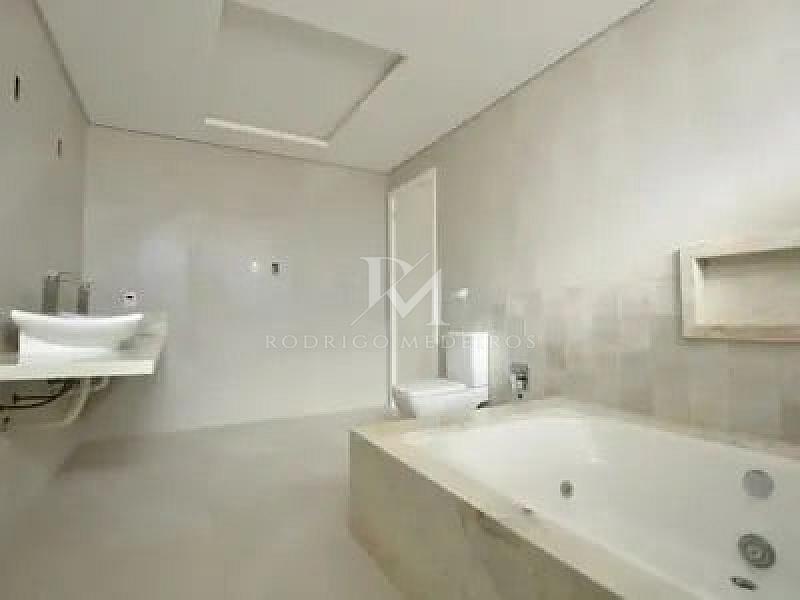 No pavimento superior, o destaque vai para a suíte máster: ampla, iluminada e com uma área de banho que reúne hidromassagem, duas pias e dois chuveiros, além de sacada privativa. As outras duas suítes também contam com sacadas e persianas elétricas, reforçando a proposta de conforto e praticidade. Há ainda um espaço reservado para escritório ou home office.