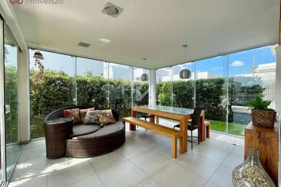 A área externa é um convite ao relaxamento. A piscina privativa integra-se ao espaço gourmet, projetado para receber com charme e descontração. Complementam a estrutura a área de serviço e a garagem fechada para quatro veículos.