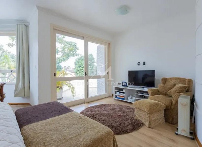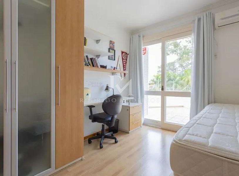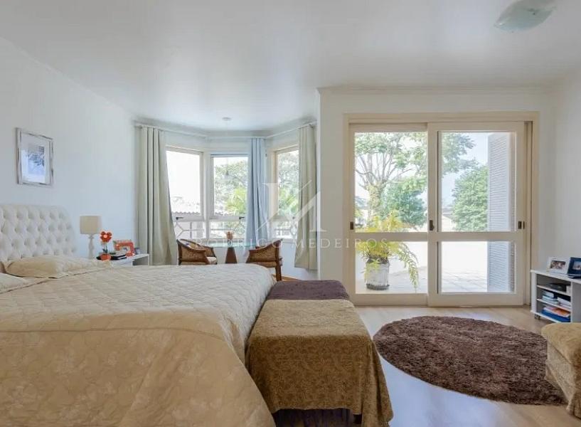 No segundo andar, a área íntima foi pensada para oferecer conforto absoluto. São quatro dormitórios, sendo duas suítes, incluindo uma suíte máster com closet e banheira de hidromassagem. Os outros dois quartos compartilham um banheiro funcional, e todos os dormitórios contam com acesso à ampla sacada, com vista para o entorno arborizado.