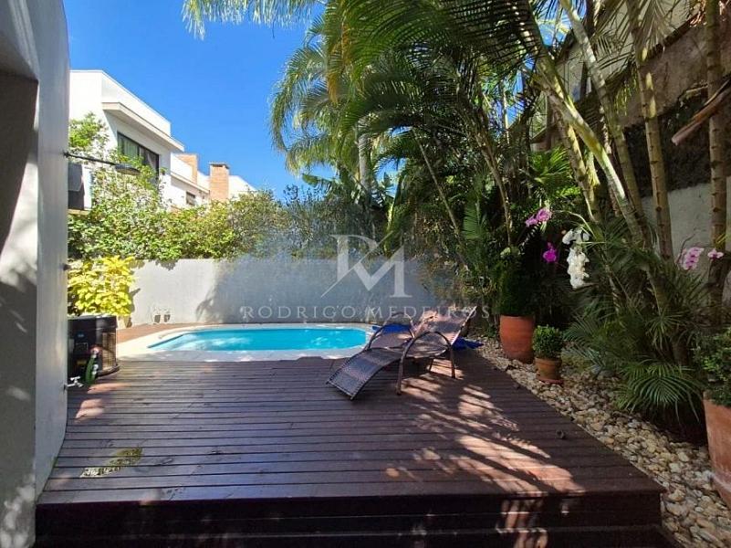 A área externa amplia as possibilidades de uso da casa, com varanda, quintal e piscina, proporcionando momentos de lazer com privacidade. O imóvel conta ainda com quatro vagas de garagem, atendendo com conforto famílias maiores ou quem valoriza espaço adicional.