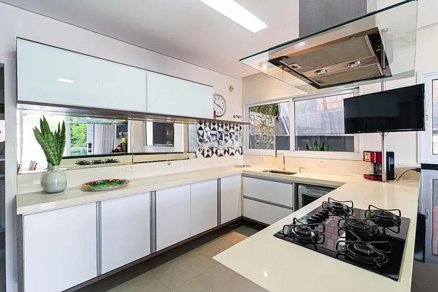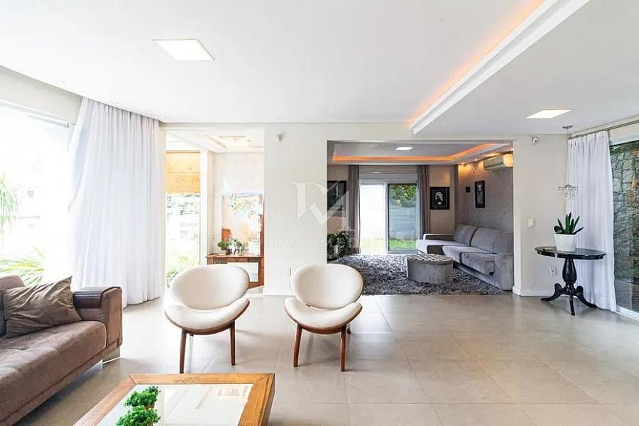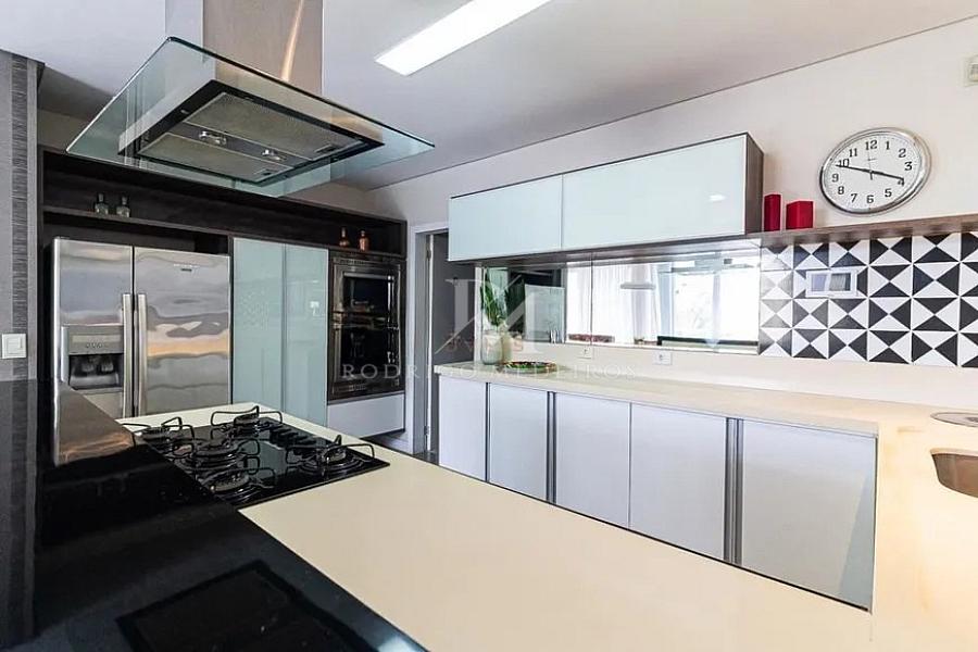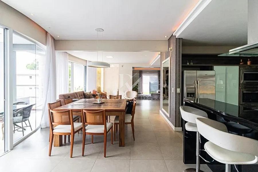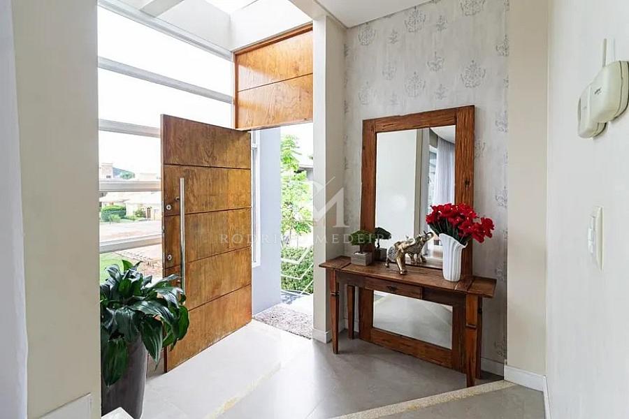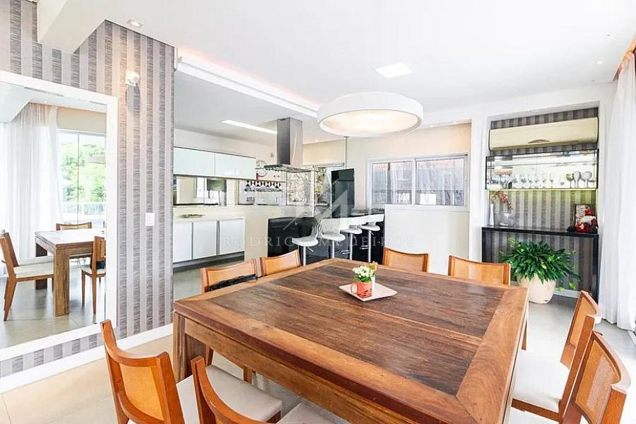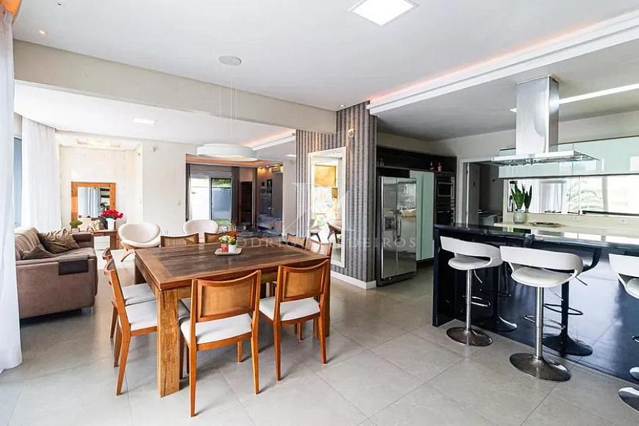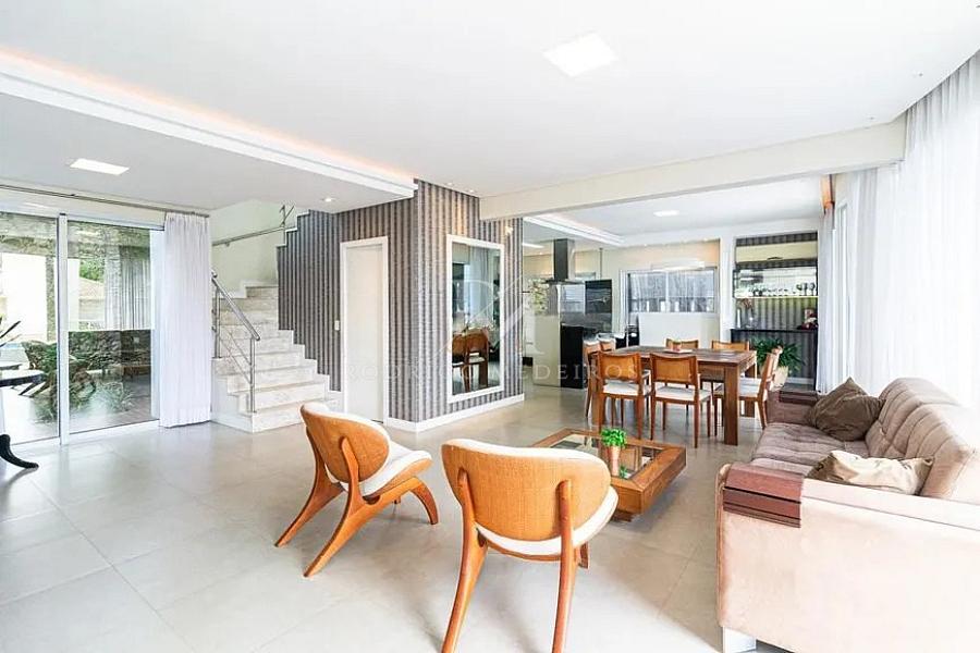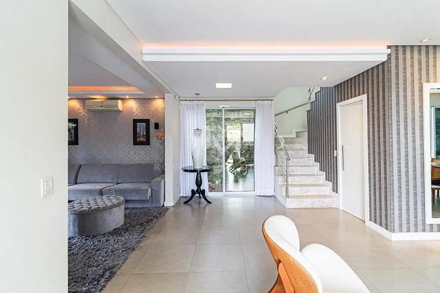 Com dois pavimentos bem distribuídos, a casa oferece três suítes, sendo a principal com closet e ambientes amplos, climatizados e mobiliados com excelente padrão. A área social conta com sala espaçosa em dois ambientes, lavabo e cozinha gourmet planejada — perfeita para quem gosta de receber.