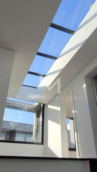 A casa conta com 4 suítes, oferecendo privacidade e conforto aos moradores, além de 5 banheiros planejados com funcionalidade e requinte. O pé-direito de 3 metros no pavimento térreo amplia a sensação de espaço e luminosidade.
