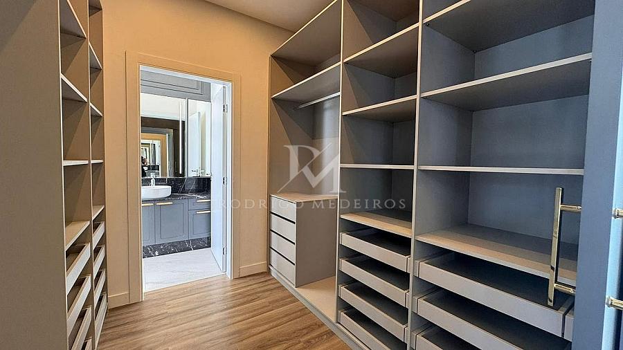 A área íntima conta com quatro suítes, planejadas para garantir privacidade e conforto para toda a família. A suíte master se destaca pelas dimensões generosas e pelo cuidado nos acabamentos, criando um espaço acolhedor e silencioso para descanso.