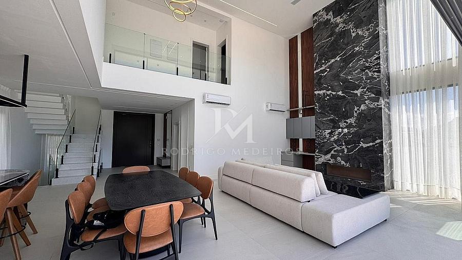 O projeto privilegia ambientes amplos e bem distribuídos, com destaque para a área social integrada, onde living, sala de jantar e cozinha gourmet formam um espaço ideal tanto para o dia a dia quanto para receber convidados com conforto. As grandes aberturas proporcionam excelente iluminação natural e ventilação, reforçando a sensação de amplitude e bem-estar em todos os ambientes.