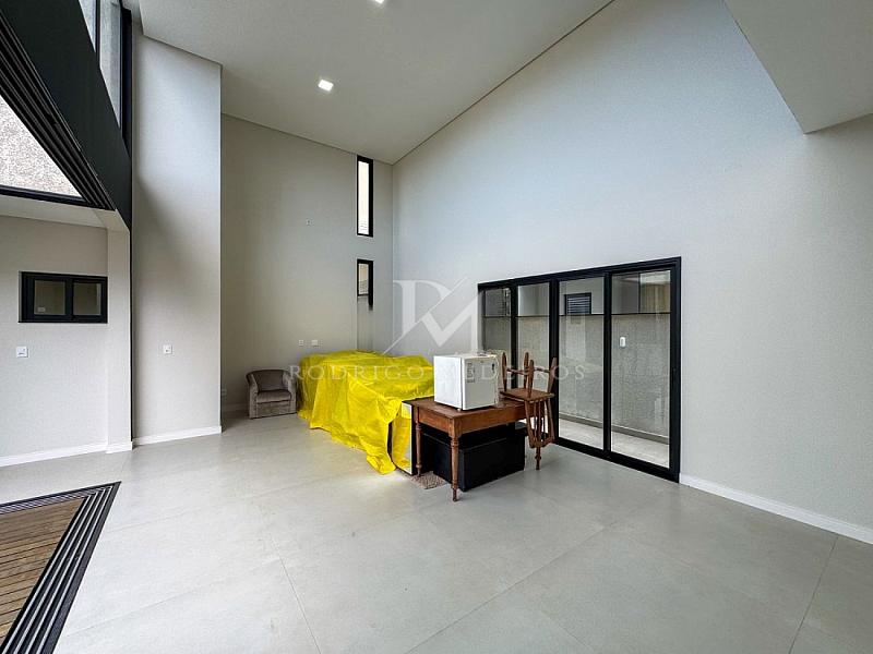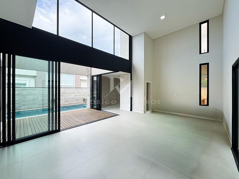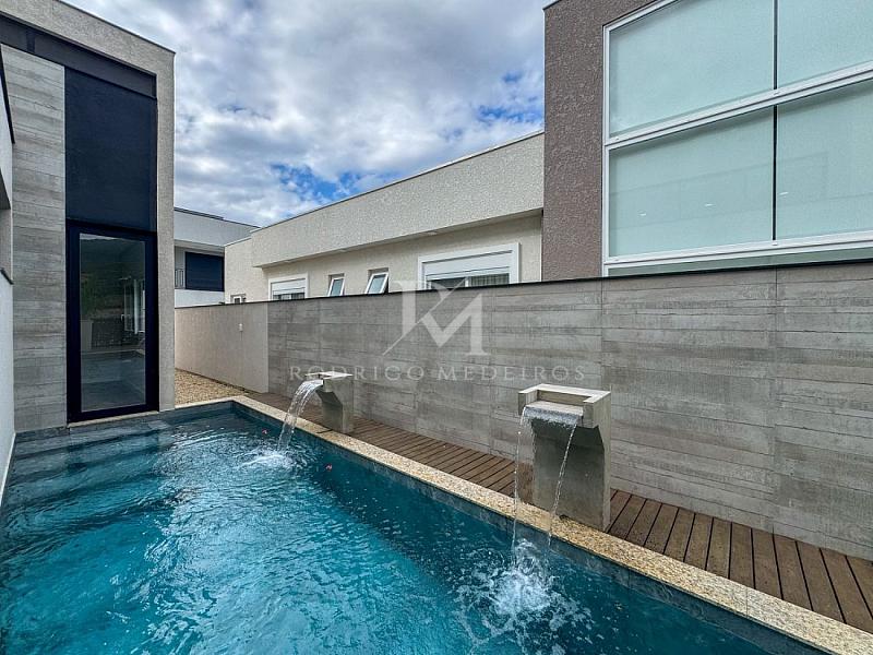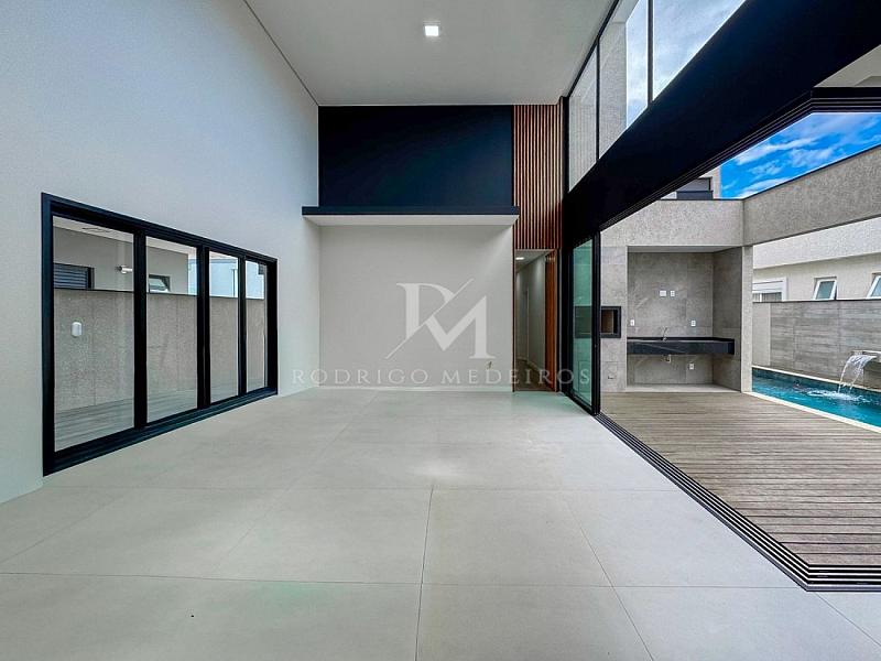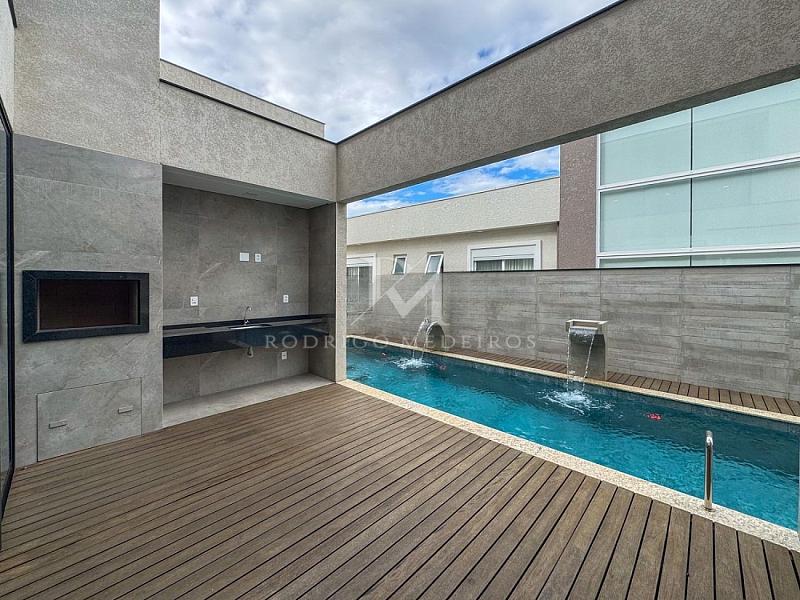 A área social valoriza amplitude e integração, com sala e cozinha conectadas sob pé-direito duplo, living espaçoso e acabamentos cuidadosamente selecionados, como porcelanato acetinado nas áreas sociais e piso vinílico na área íntima. O espaço gourmet com churrasqueira a carvão se integra à área externa, onde a piscina em estilo raia, com hidro, cascatas, iluminação e tratamento em sistema de sal, reforça a proposta de lazer exclusivo.