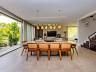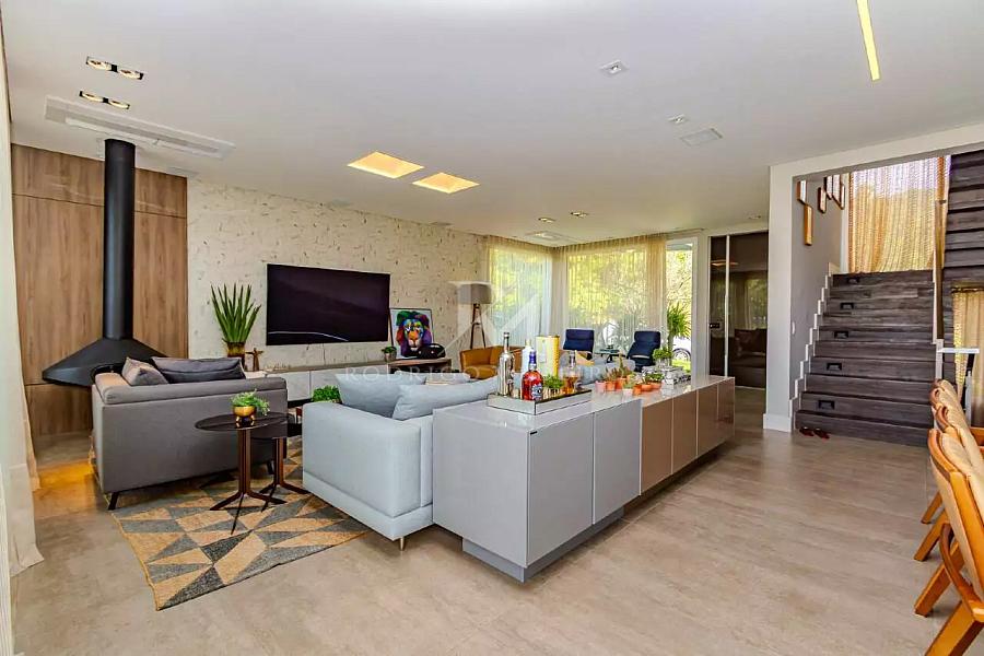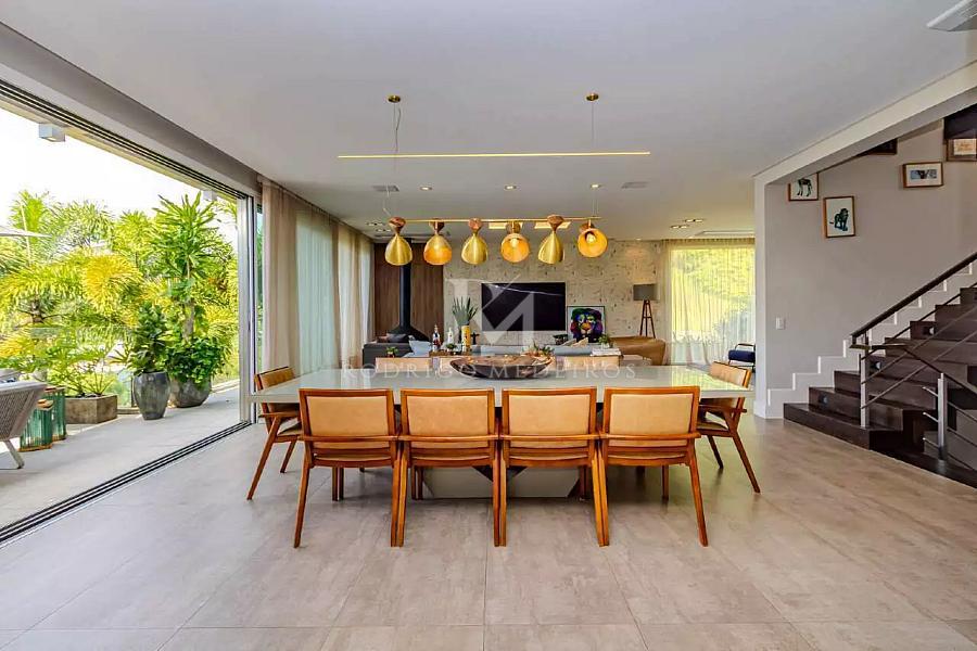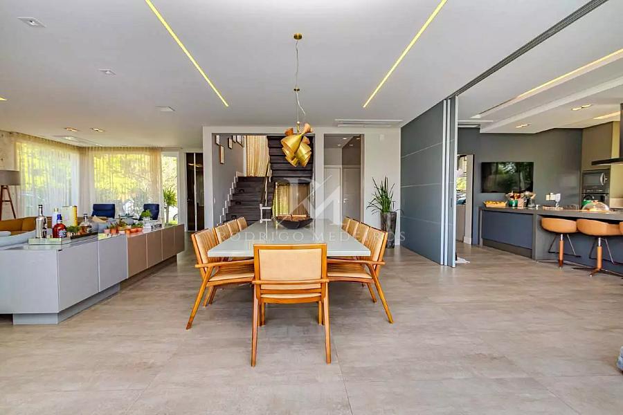 Com 543m² de área privativa, o projeto valoriza a fluidez entre os ambientes, conectando sala de estar, jantar, cozinha e área externa em uma composição que favorece a convivência. A integração com o espaço gourmet e a piscina aquecida cria um cenário ideal tanto para momentos íntimos quanto para receber com elegância.