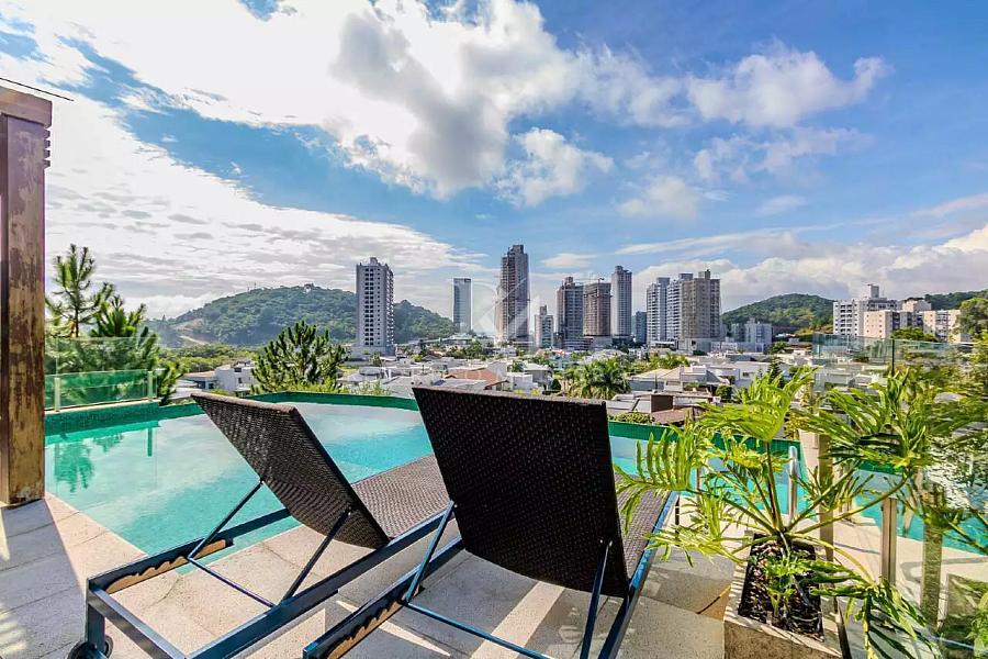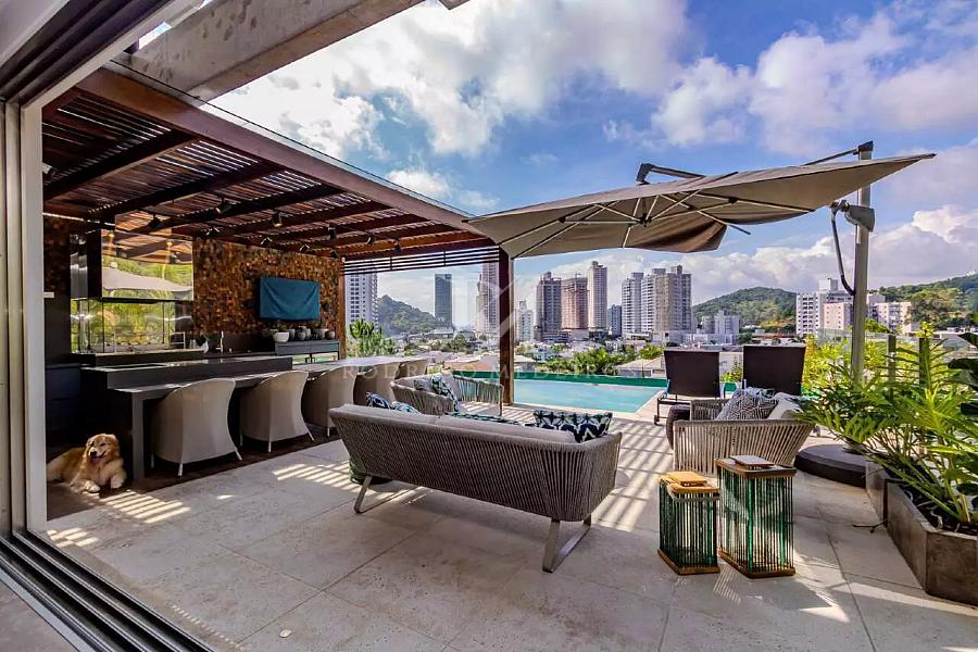 Na área externa, a piscina aquecida com borda infinita se conecta ao espaço gourmet, criando um ambiente sofisticado e convidativo. Um cenário ideal para desfrutar de momentos especiais ao longo de todo o ano.