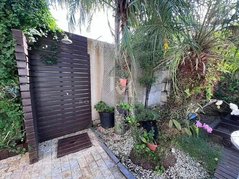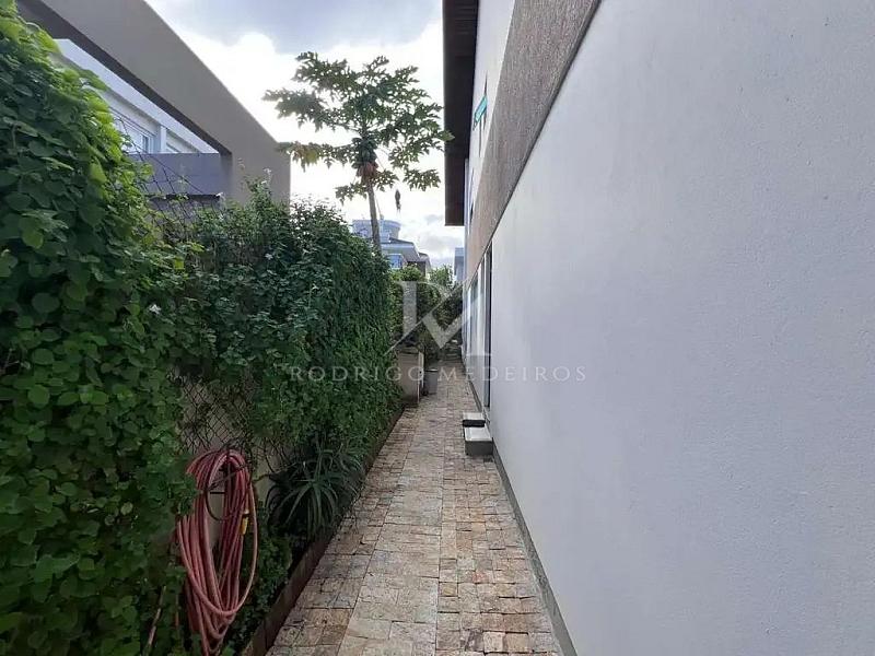 O espaço externo é um dos grandes destaques da casa, com área gourmet com churrasqueira, piscina com deck e jardim paisagístico com plantas ornamentais, garantindo um ambiente agradável e privativo.