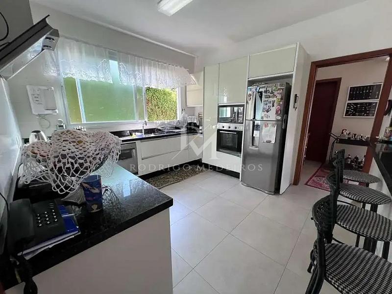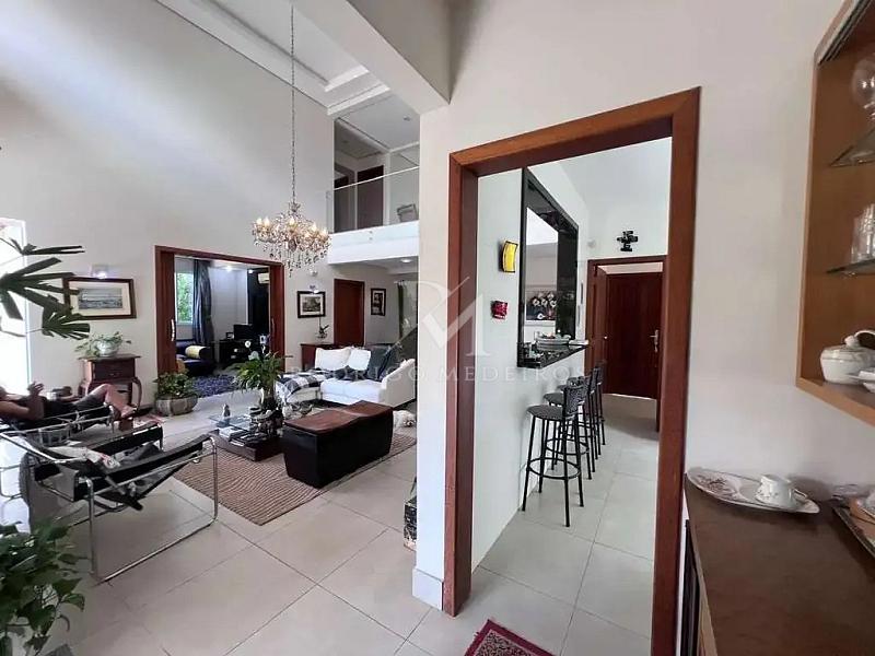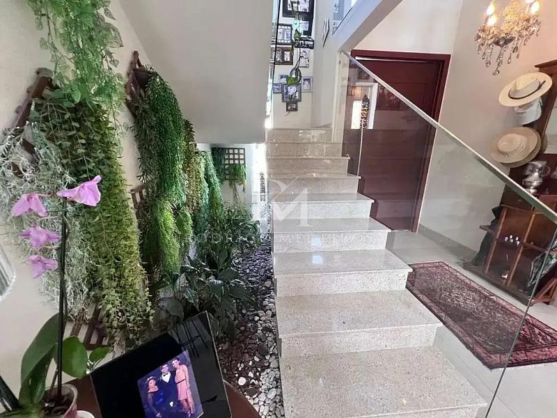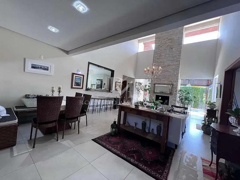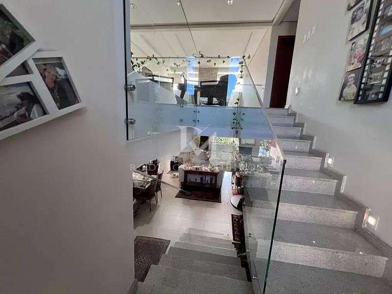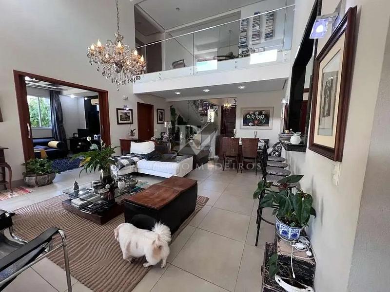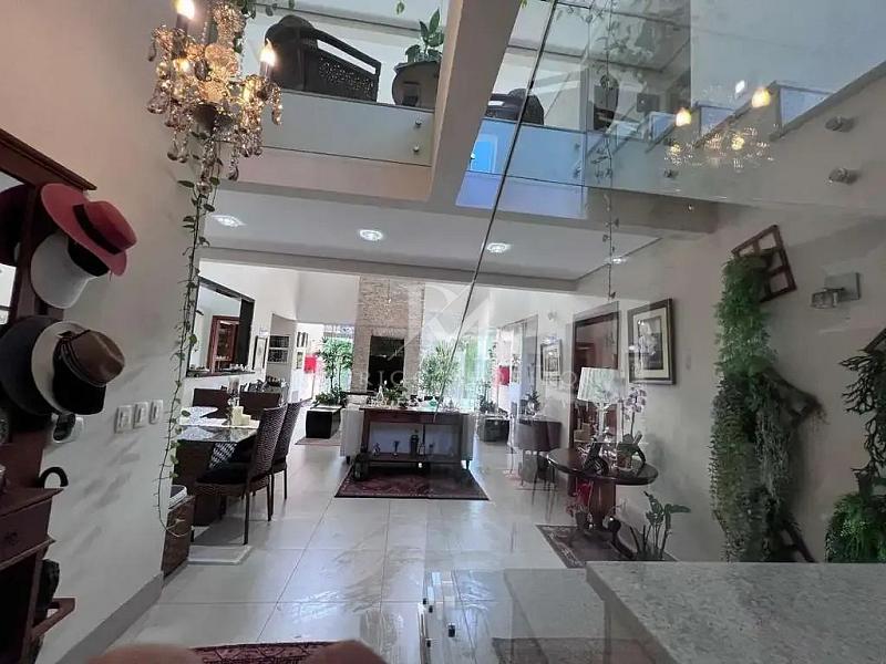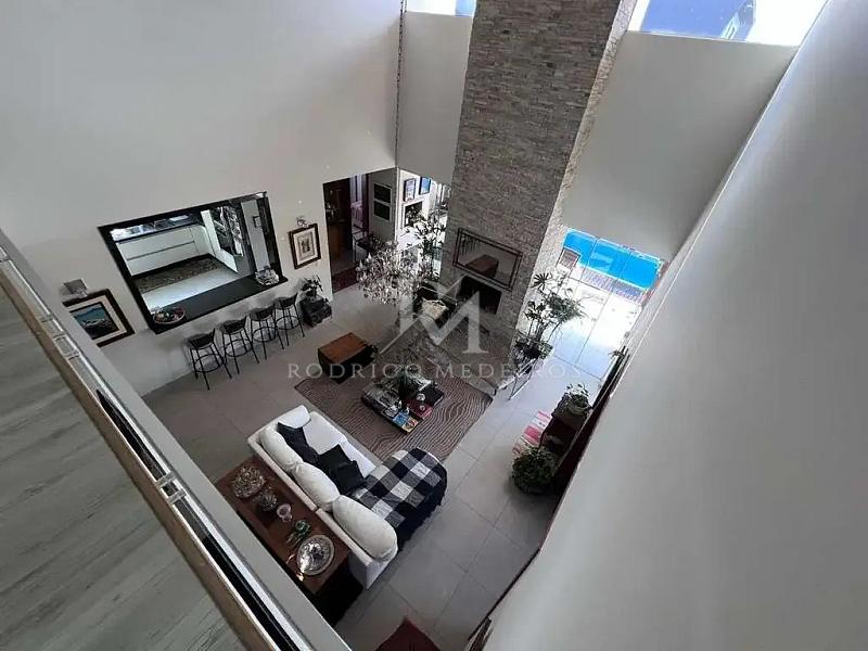 Com 417m² de área construída em um terreno de 794m², o imóvel apresenta living com pé-direito duplo, lareira e excelente iluminação natural, integrado à sala de jantar e à sala de TV reservada. A cozinha é completa e planejada, com ótima circulação e fácil acesso à área gourmet, criando um ambiente prático para quem gosta de receber.