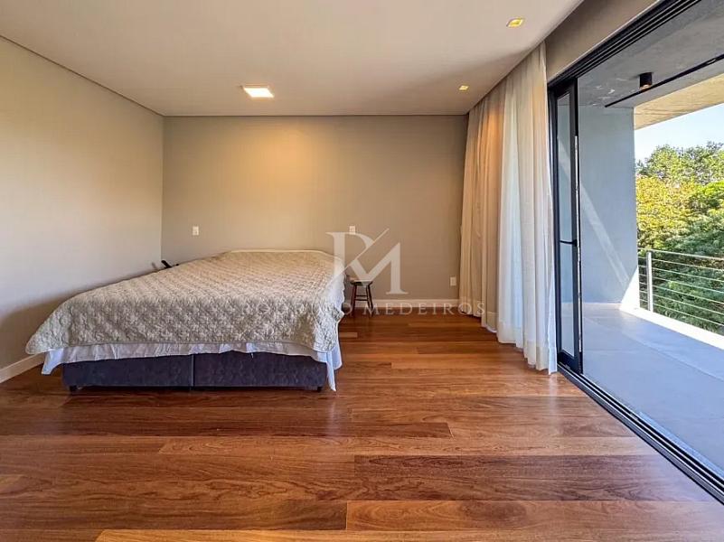 Na área íntima, o imóvel oferece cinco suítes, incluindo uma suíte térrea, que amplia a acessibilidade e versatilidade de uso. No pavimento superior, os dormitórios mantêm o padrão de conforto e privacidade, enquanto o terraço se apresenta como um espaço adicional de contemplação, já preparado para instalação de hidromassagem.