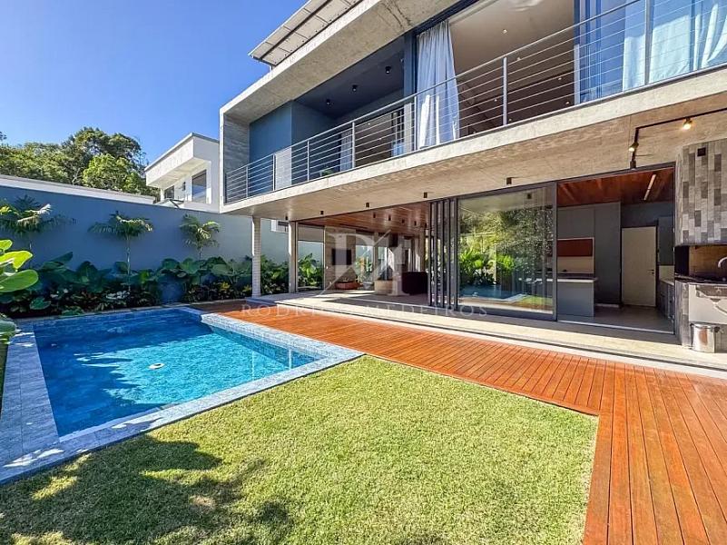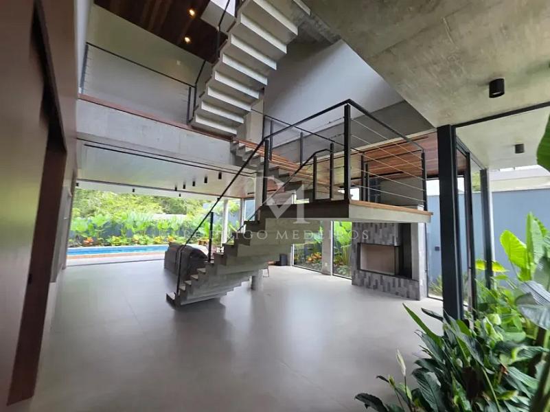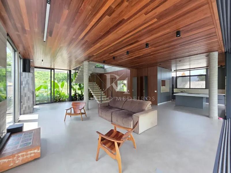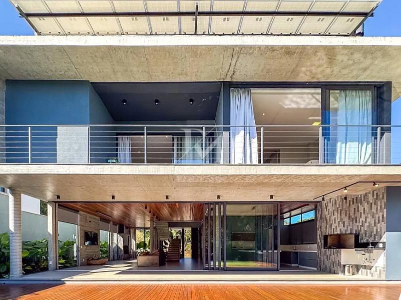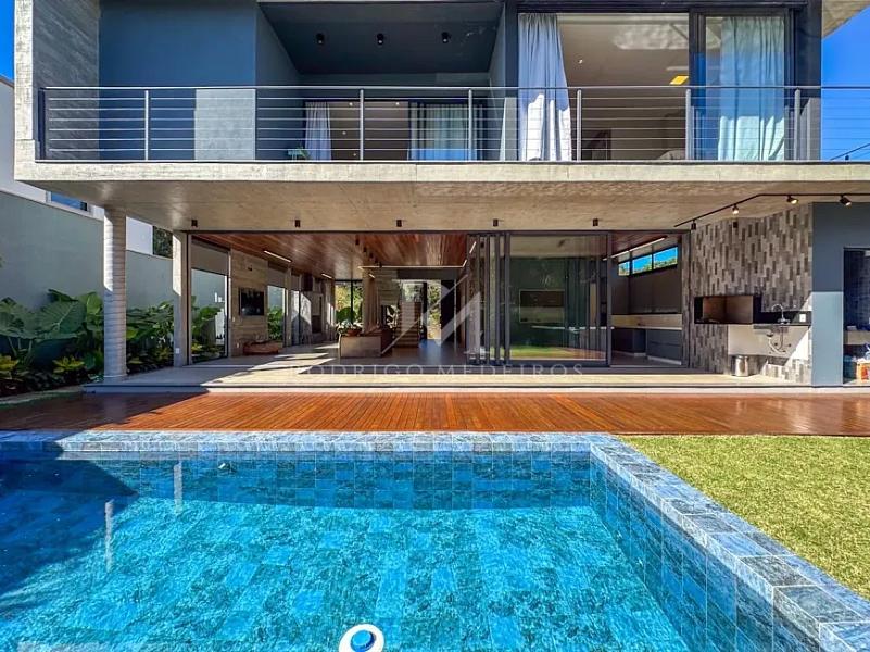 Com aproximadamente 492 m² de área privativa, a casa se destaca pela sua presença arquitetônica e pela forma como integra os ambientes. O pé-direito duplo e o conceito aberto ampliam os espaços e favorecem a entrada de luz natural, criando uma atmosfera leve e acolhedora.
