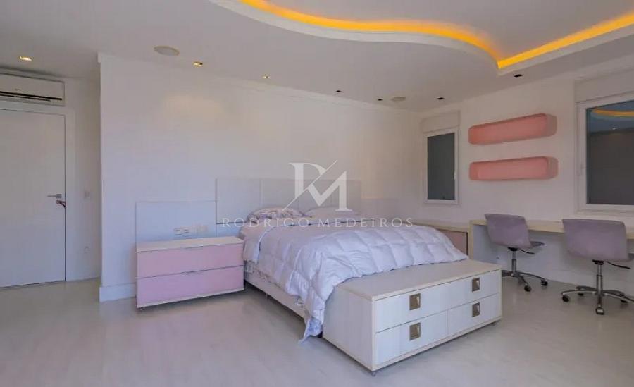 • Amplas Áreas Sociais: Sala de estar, jantar, home theater e sala íntima, todas mobiliadas com requinte
