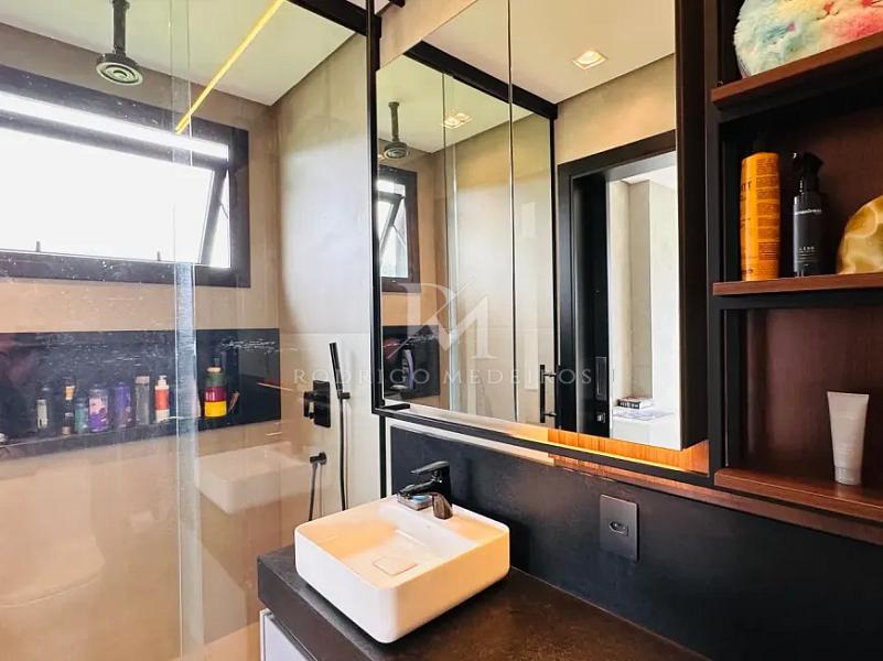 Os acabamentos valorizam o imóvel, com piso vinílico, porcelanato e detalhes que garantem funcionalidade, como água quente nas torneiras e chuveiros, além de espera para ar-condicionado. A cozinha, integrada aos demais ambientes, favorece a convivência, enquanto a área de serviço e lavanderia proporcionam organização e comodidade no dia a dia. A área externa conta com piscina e amplo espaço para momentos de lazer e relaxamento.